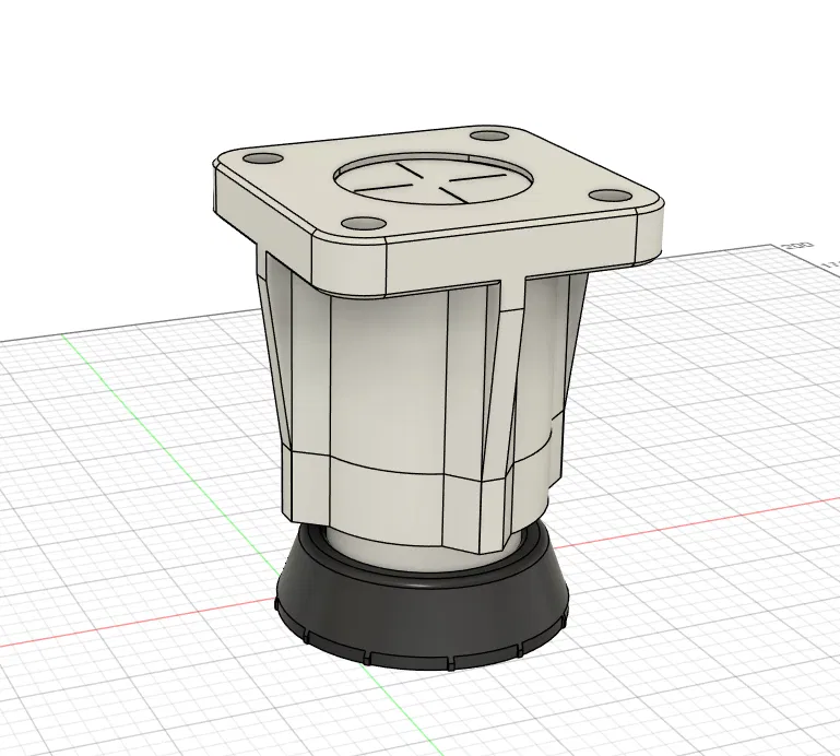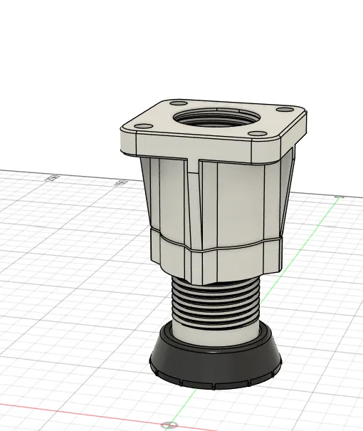 Mặt bích gá phía trên (lỗ 8mm) cho phép bắt cứng vào khung hoặc bệ máy, trong khi phần ren cho phép chỉnh cao theo phương đứng một cách mịn. Hình học phần chân bên dưới phù hợp để dùng kèm miếng đệm cao su hoặc phần tử damping nhằm giảm rung và hạn chế làm trầy/xước bề mặt.