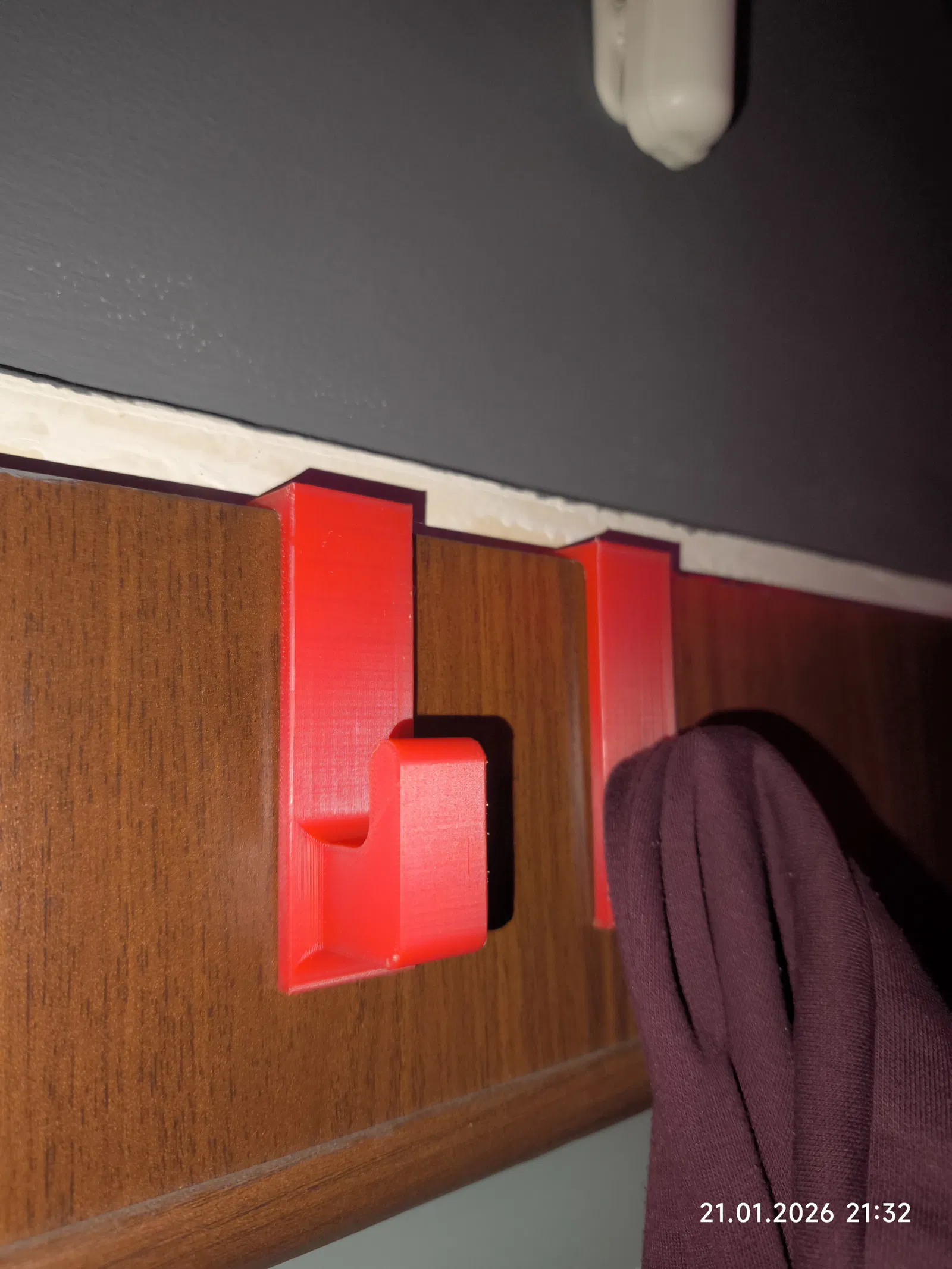 Móc ôm qua mép trên của cánh cửa và có 4 phiên bản tương ứng với độ dày cửa khác nhau: 16 mm, 17 mm, 18 mm và 20 mm. Nhờ vậy bạn có thể chọn đúng cỡ để móc bám chắc và ổn định theo độ dày cửa nhà mình.