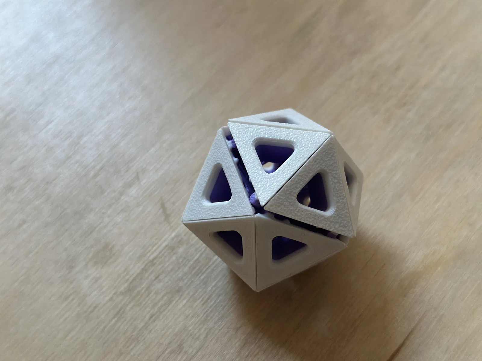 Mô hình Puzzle Joint Icosahedron Ball gồm 20 mảnh giống nhau, bấm khớp chắc chắn để ghép thành khối icosahedron mà không cần keo, nam châm hay ốc vít. In PLA dễ, không cần supports.