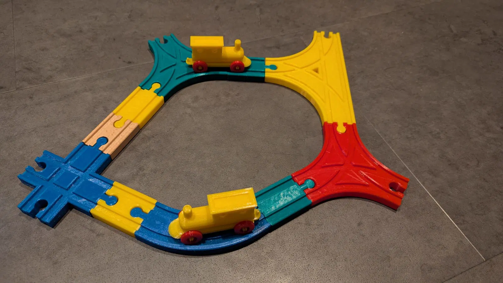 Bộ Complete Toy train trackset with locomotive gồm đủ chi tiết làm đường ray hoàn chỉnh cho bé chơi, có kèm đầu máy. Tương thích IKEA và Little dutch, chừa clearance 2mm. Khuyến nghị infill 8% cho ray, 100% cho đầu máy và bánh xe.
