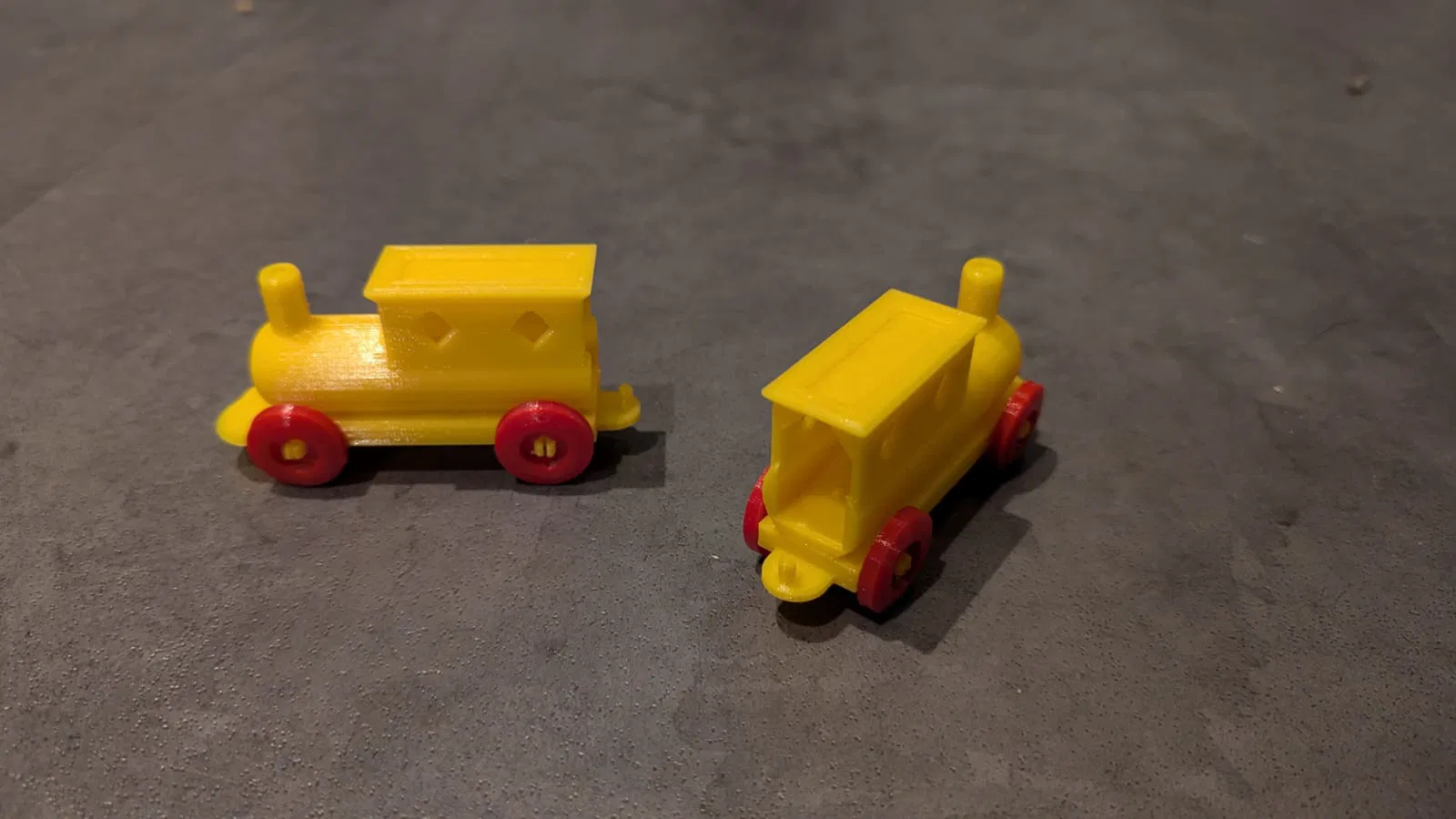 Mình khuyên in tất cả chi tiết (trừ đầu máy) với 8% infill. Đầu máy và bánh xe của nó nên in 100% infill để bền và an toàn hơn. Mình dùng PETG cho tất cả các phần trong hình, và chưa có kinh nghiệm với các vật liệu khác.