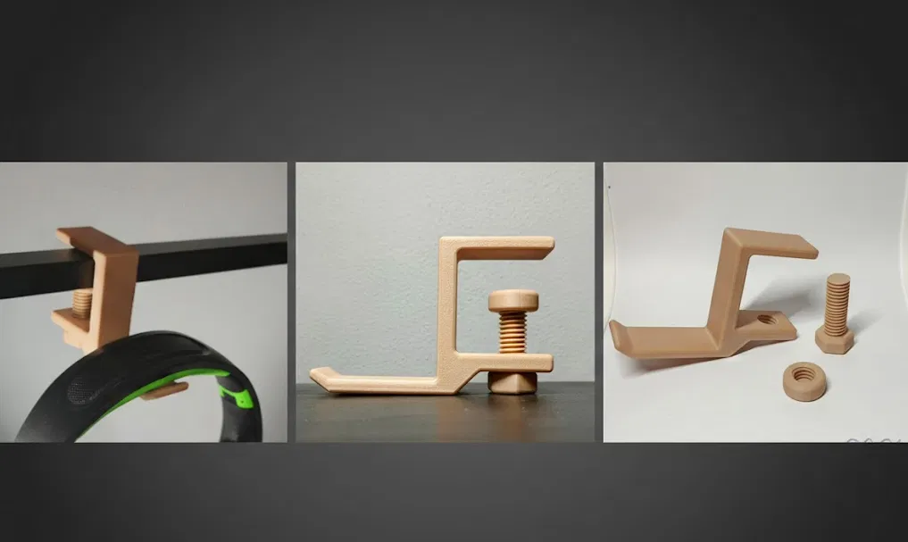 Móc treo tai nghe (Headphone Hook) có thể điều chỉnh dải kẹp 15–34 mm, thiết kế đơn giản mà chắc chắn. Dễ in với PLA/PETG, khuyến nghị 3–4 wall lines và infill 20% để dùng bền lâu.