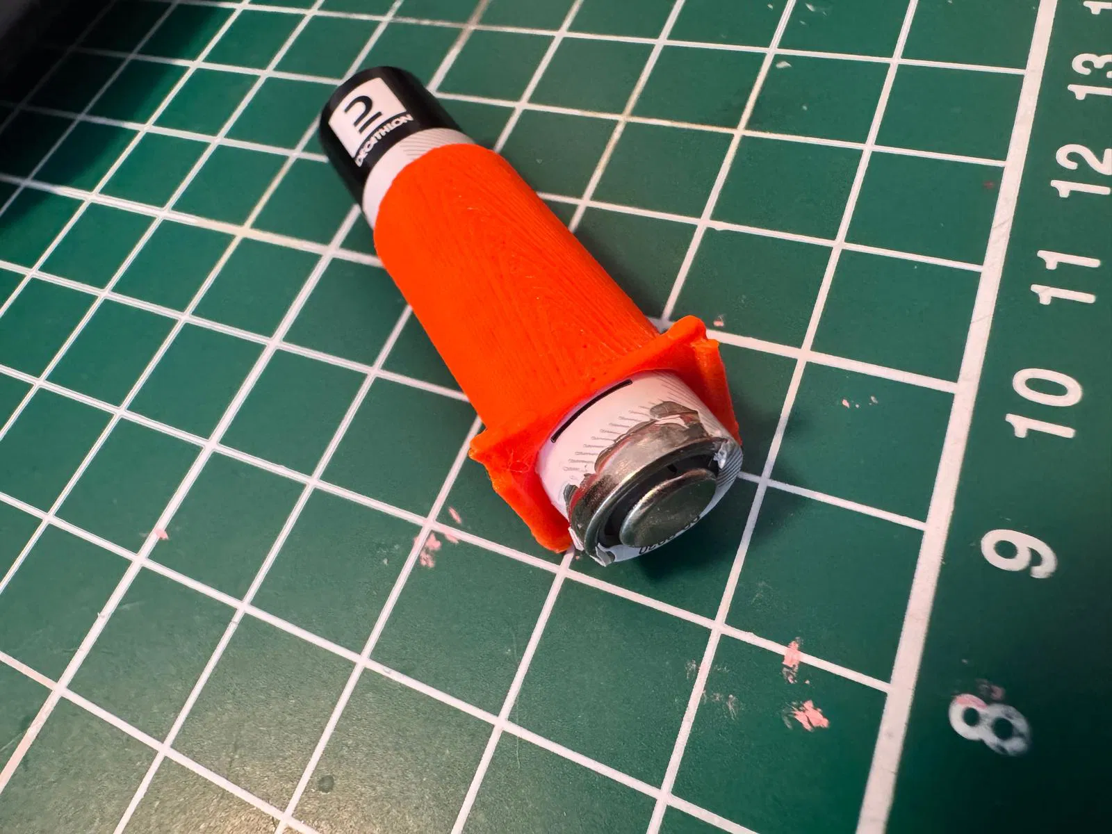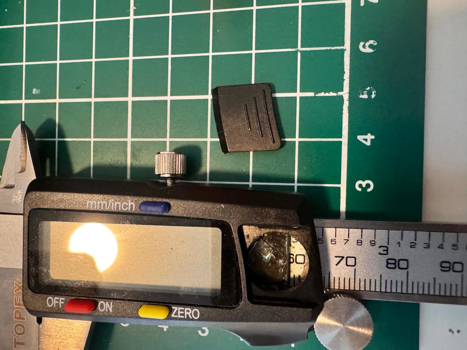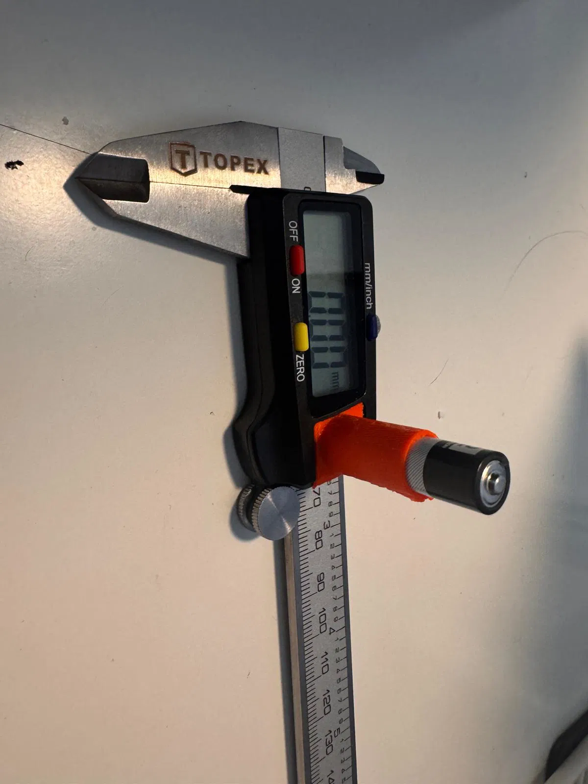 Mẫu nắp nghiêng thay thế cho thước cặp, đổi từ pin LR44 sang nắp dùng pin AAA. Hướng dẫn dùng pin AAA alkaline và bóc một phần tem để lộ cực +. Ý tưởng gốc: @Nils.