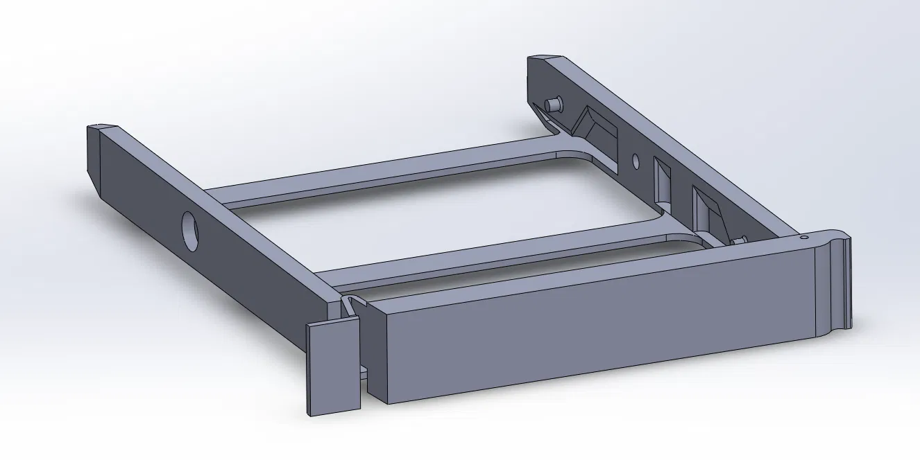 Mẫu khay HDD (HDD tray) thay thế cho thùng máy COOLERMASTER HAF 932 khi khay zin bị nứt. In PETG trên P1S với tree supports; dùng đoạn filament D1.75mm dài 20mm làm chốt bản lề.