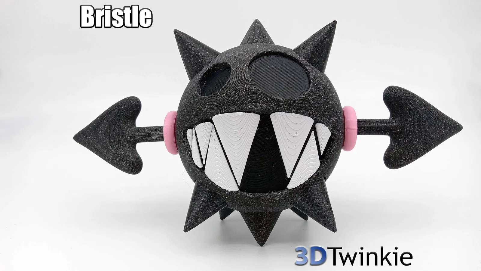 Mẫu 3D lấy cảm hứng từ kẻ địch “Bristle” trong Paper Mario: TTYD, với các chóp nhọn và giáo kéo ra hai bên. In không cần supports, tối ưu cho nozzle 0.4mm & layer 0.2mm, tách part để tô màu, cần keo lắp ráp.