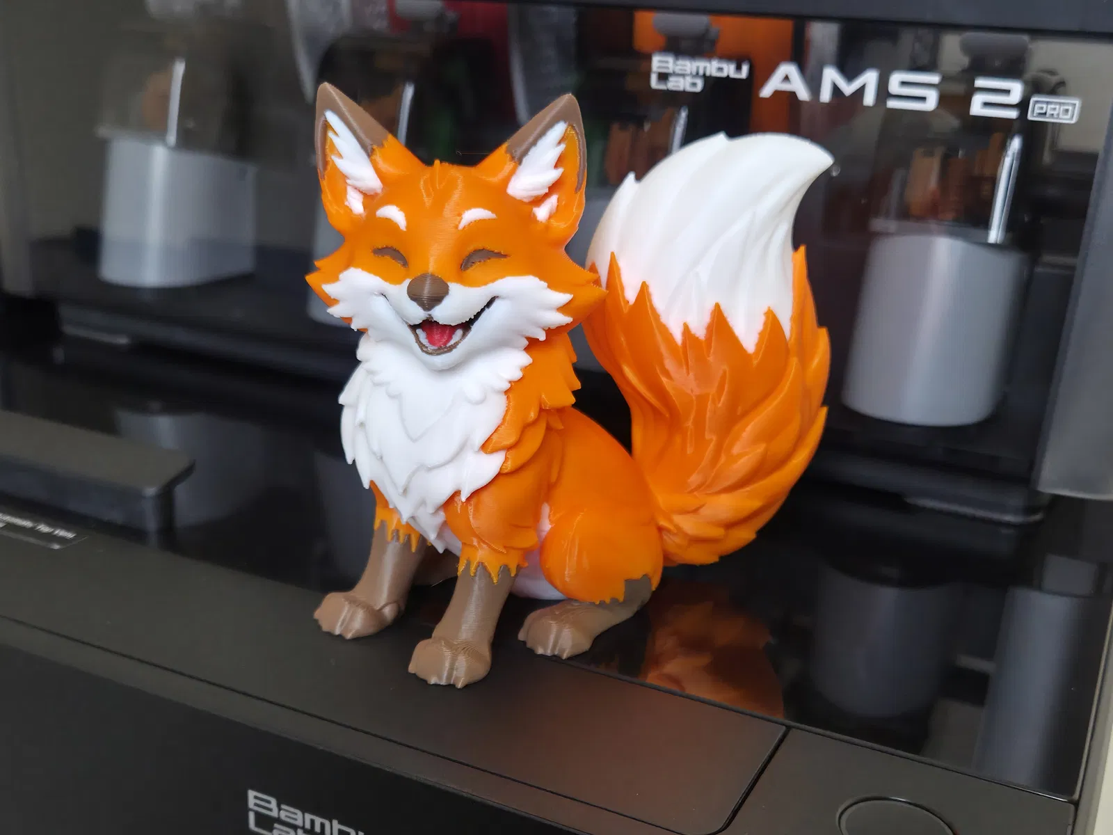 Mẫu cáo dễ thương với biểu cảm vui vẻ, rất hợp để làm đồ trang trí hoặc quà tặng. Dễ in, không cần supports, Layer Height 0.2mm. Cũng là mẫu test multi color/H2C khá lý tưởng.
