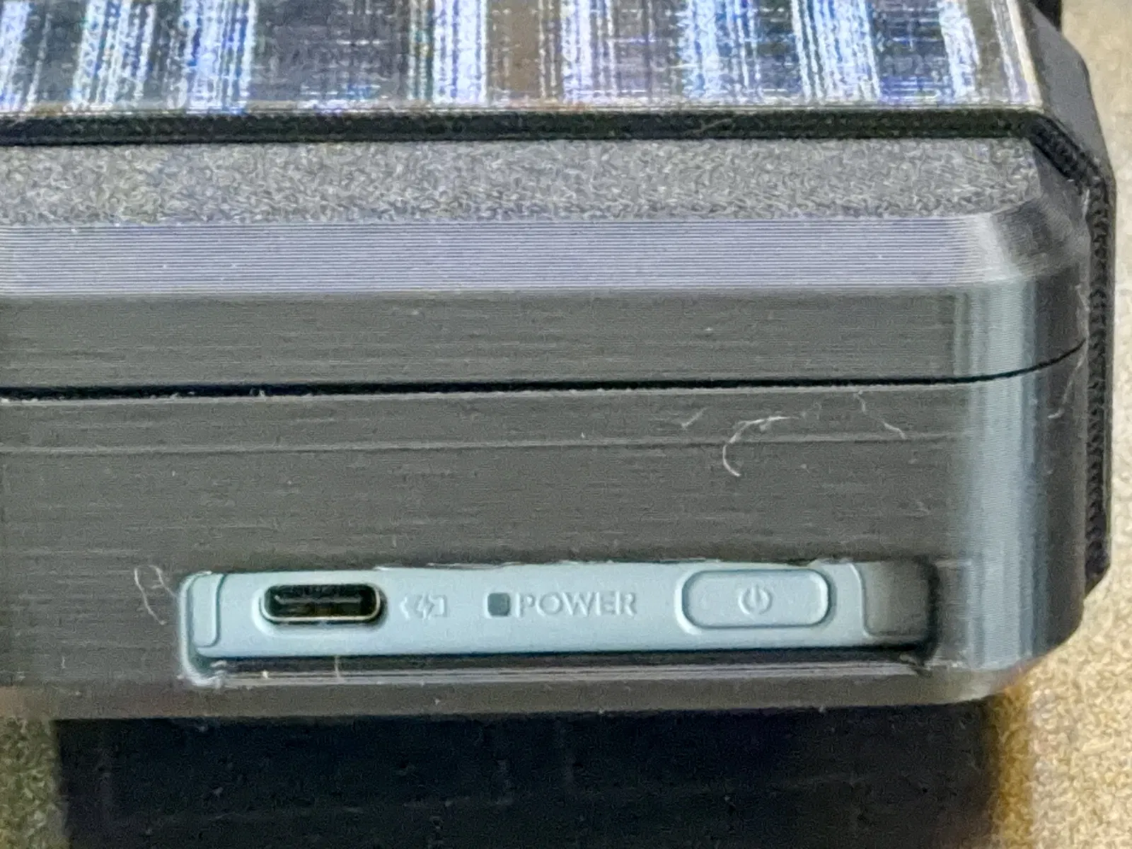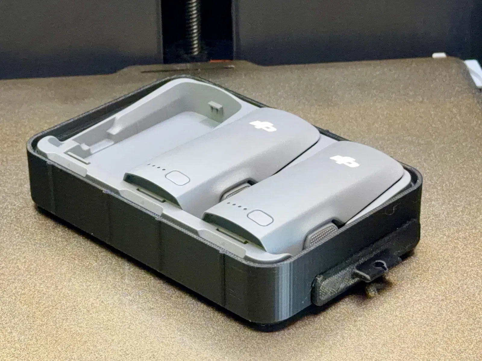 Mình cũng có kèm một case thiết kế tương tự cho bộ sạc pin, dù nó không có gối đỡ bên trong. Nó vẫn cứng cáp nhưng không bằng case drone. Cơ chế đóng tương tự, nhưng thay vì thêm nam châm (vì sẽ phải làm hình dạng không đều), bản này cần dây TPU để giữ đóng. Ngoài ra nó có một cửa mở để bấm nút nguồn, cắm cổng USB-C và nhìn đèn trạng thái. Mình có kèm một nút bịt cho cửa này, khi tháo ra có thể kẹp lên sợi cáp USB dày 3–4mm để khỏi thất lạc. Mình cũng kèm template để làm lớp lót nắp cho case này, nhưng cũng không bắt buộc. Có lót thì sẽ không bị kêu lạch cạch. Có thêm 2 dây cho case này. Một dây có các vòng để luồn velcro hoặc dây đai nylon nhằm cột case pin vào power bank. Mình không tin mấy vòng này để buộc cả case ra ngoài balo. Dây còn lại thiết kế riêng cho Anker 20100 mAh, kích thước xấp xỉ 63mm x 22mm. Lưu ý: Lớp lót có thể cần khoét chỗ để tránh bị tì lên nút pin.