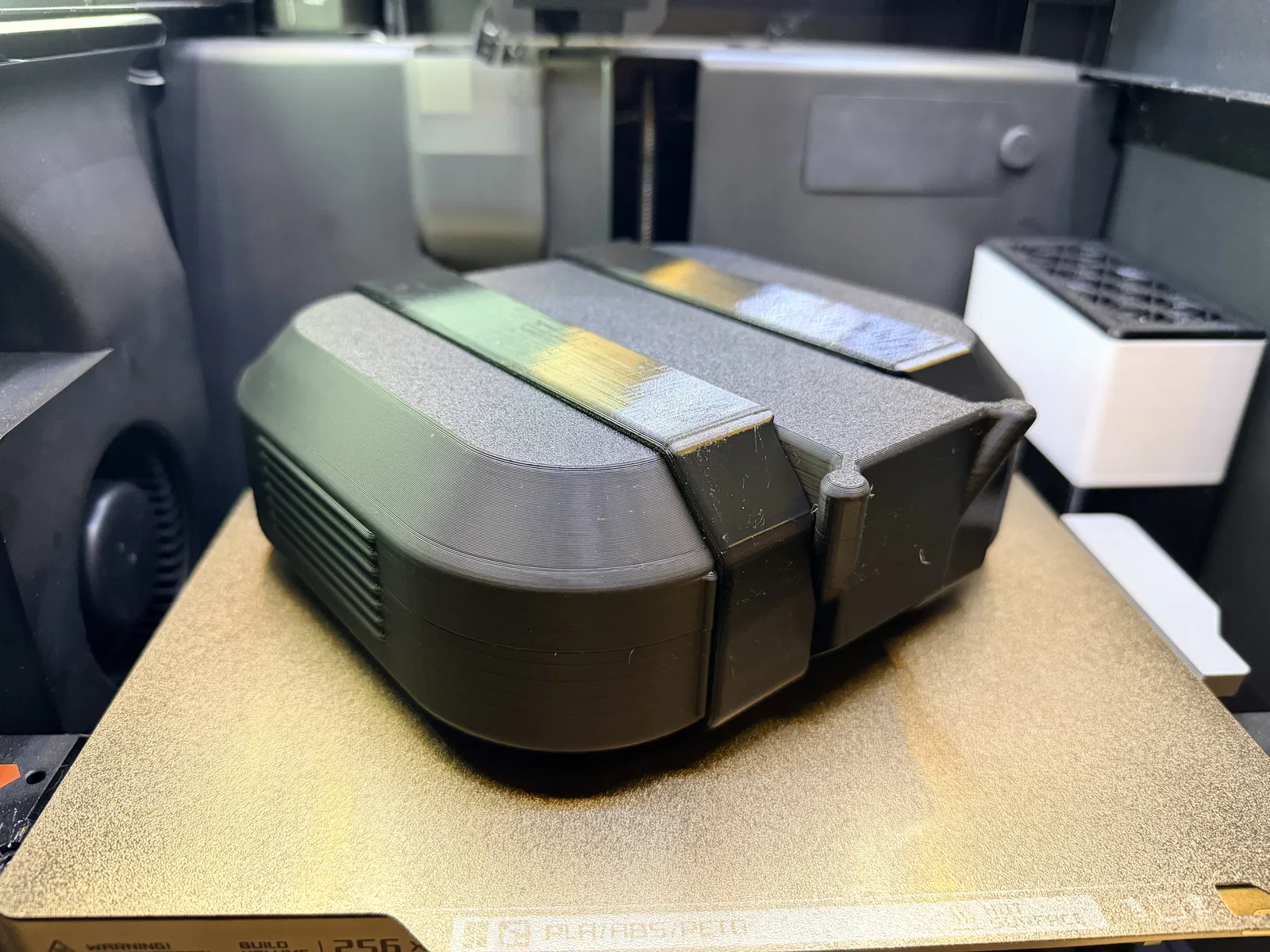 Cases and Lids: PLA/PLA+ hoặc filament bạn thích, ví dụ ASA - .28 Extra Draft - .20 Strength. Bạn muốn làm đặc như cục gạch cũng được. (Cần 3 walls để các gối đỡ giữa được đặc). Lưu ý: Mình khuyên in có support cho phần cổng của hộp pin (battery box port) để tránh bị sệ nhẹ, dù chuyện này không ảnh hưởng việc dùng nút bịt cổng.