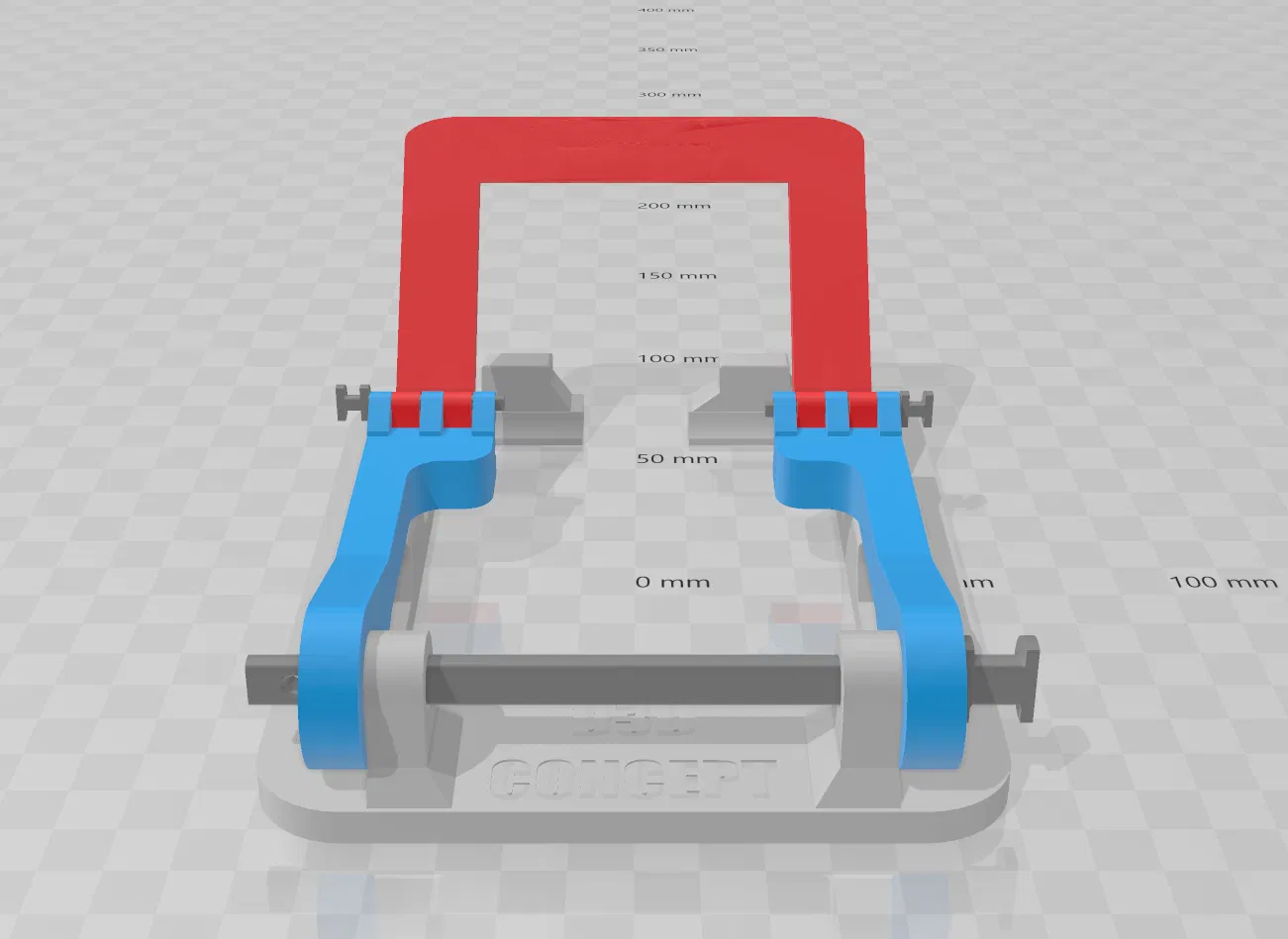 Dù các tay đã được nối với nhau bằng một trục (axle), mình vẫn gặp vấn đề khi lấy sợi filament vừa hàn xong—còn nóng và mềm—ra khỏi cụm gia nhiệt của máy Sunlu cho sạch. Do tay đòn dài nên phần kẹp (clamps) bị rơ/di chuyển quá nhiều. Mình đã nối các kẹp bằng một “cầu” (bridge) để giảm độ rơ. Ở phiên bản đầu tiên, các kẹp của tay hướng ra ngoài, vì mình thấy vậy trong hình của D3D-Concept.