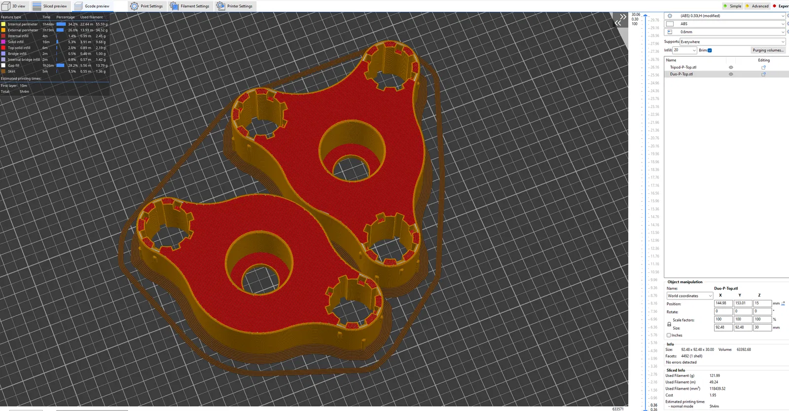 Mình không tối ưu để tiết kiệm filament nên sẽ tốn một lượng vật liệu kha khá.