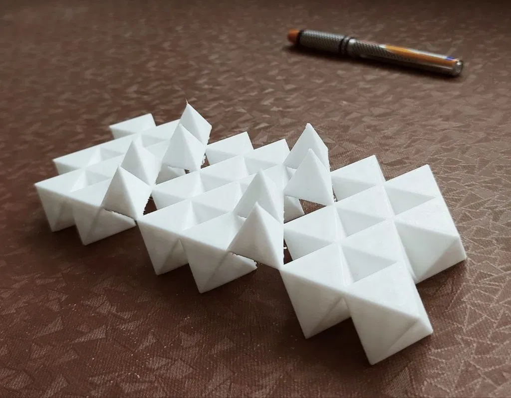 Một bài tập khác là dựng cấu trúc từ các tứ diện và bát diện rời (bạn có thể dễ dàng tìm thấy các mẫu này). Trường hợp này, tôi khuyên dùng nam châm, sẽ tiết kiệm đáng kể thời gian lắp ráp mô hình.