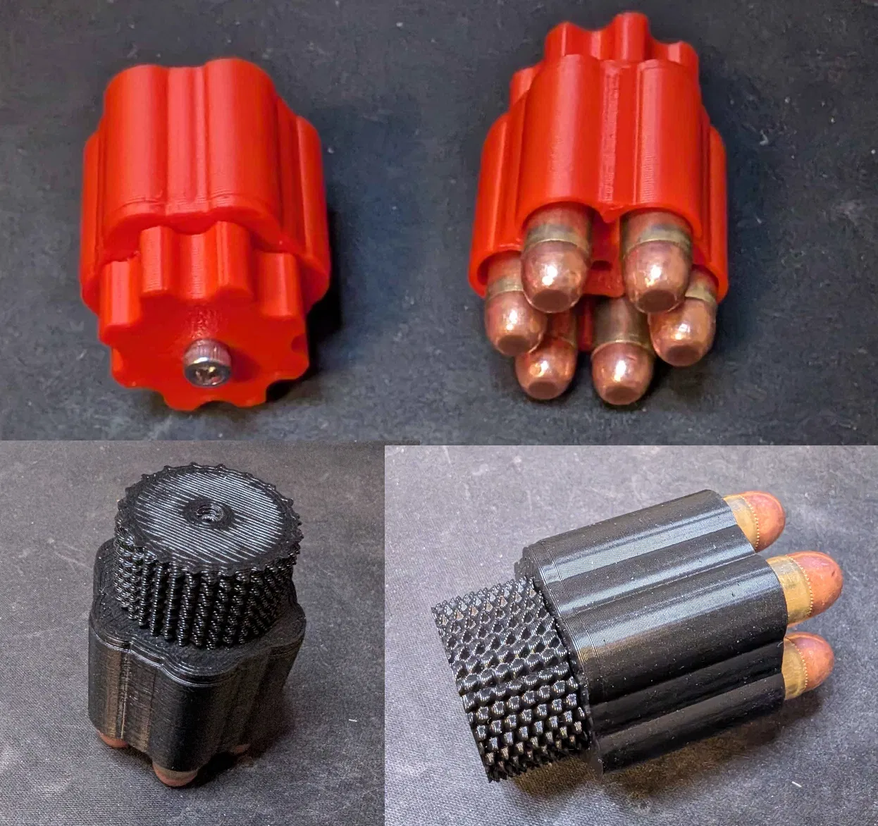 Speed loader 38/357 siêu đơn giản cho J-frame, giữ đạn thẳng hàng, có detent và lắp không bị kẹt lệch. Dùng 1 vít M4 (10–30mm), tốn khoảng 20–30g filament; ABS/ASA + vapor smoothing là tối ưu.