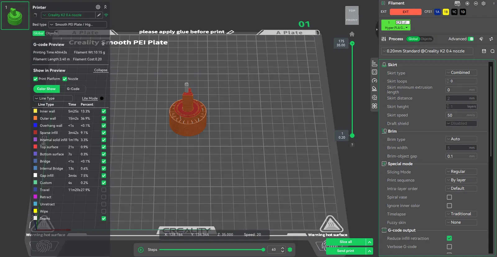 • Thời gian in trên Creality K2 khoảng 40 phút với thiết lập tiêu chuẩn.