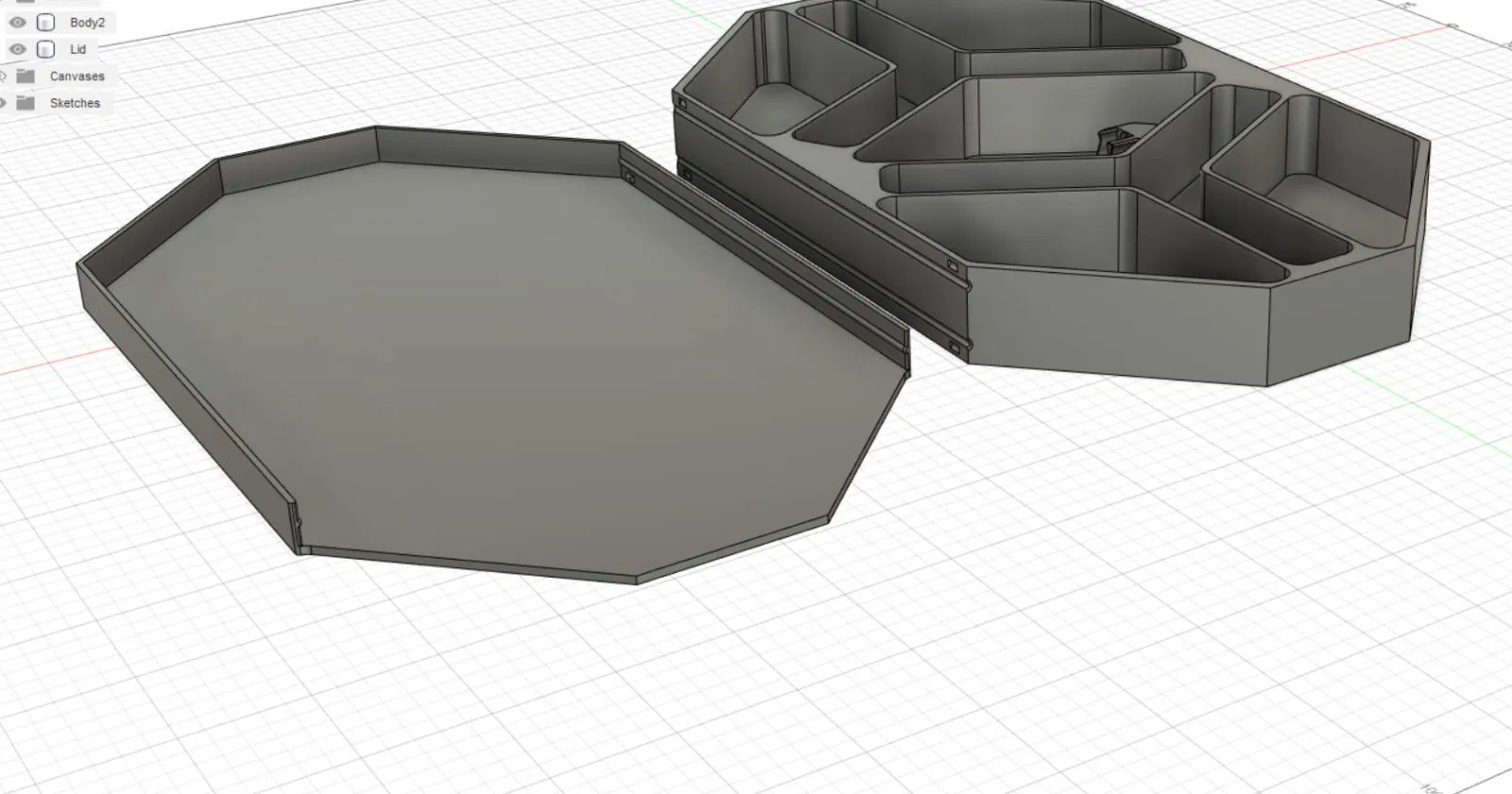Hộp đựng phụ tùng cho DJI FPV, vừa 4 cánh quạt dự phòng (2 mỗi loại) cùng các món như dây, sticks và linh kiện khác. Nắp trượt theo rãnh hai bên, có gờ kẹp giúp giữ chặt, không tự tuột.