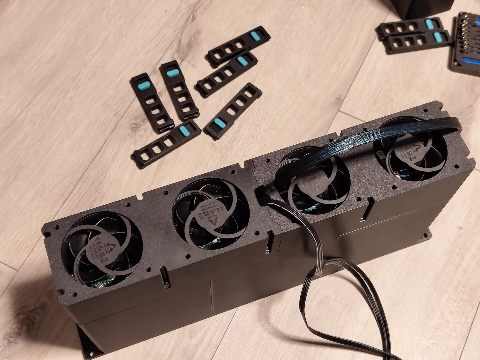 • Làm mát ổ là bắt buộc, đừng chỉ in mỗi khay (bays) và khung backplane. Với 8 ổ, khi chạy đủ tải sẽ không đủ airflow. Có thể tạm ổn nếu rack thoáng, nhưng rack kín thì nhiệt idle của ổ có thể lên ~50°C.