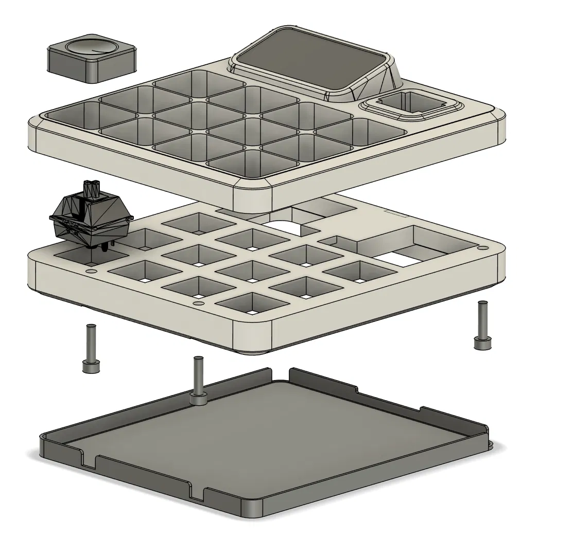 Phần vỏ và các chi tiết kết cấu được in 3D (FDM), còn keycaps thì được in bằng SLA để đạt bề mặt hoàn thiện đẹp hơn.