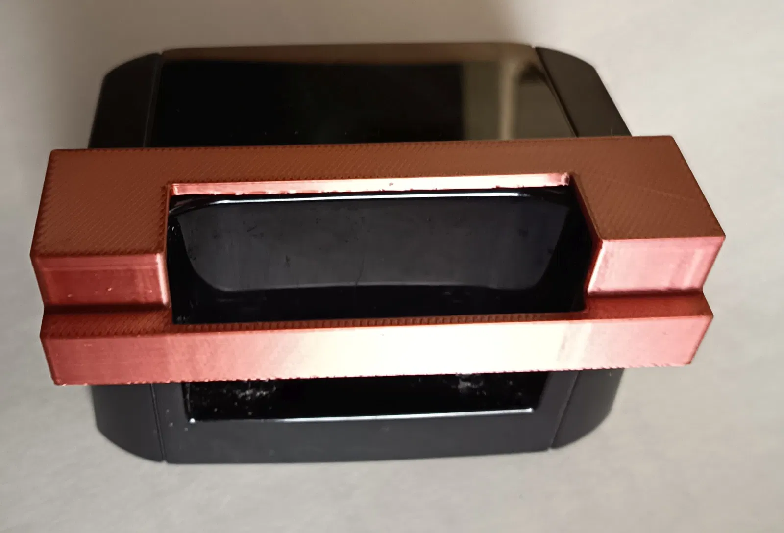 Cái nắp che đế sạc thì in bằng nhựa PLA với thông số (settings) chuẩn, có bật organic tree support nhen. In xong thì dán cố định vô bằng miếng băng keo nano (nano-tape).