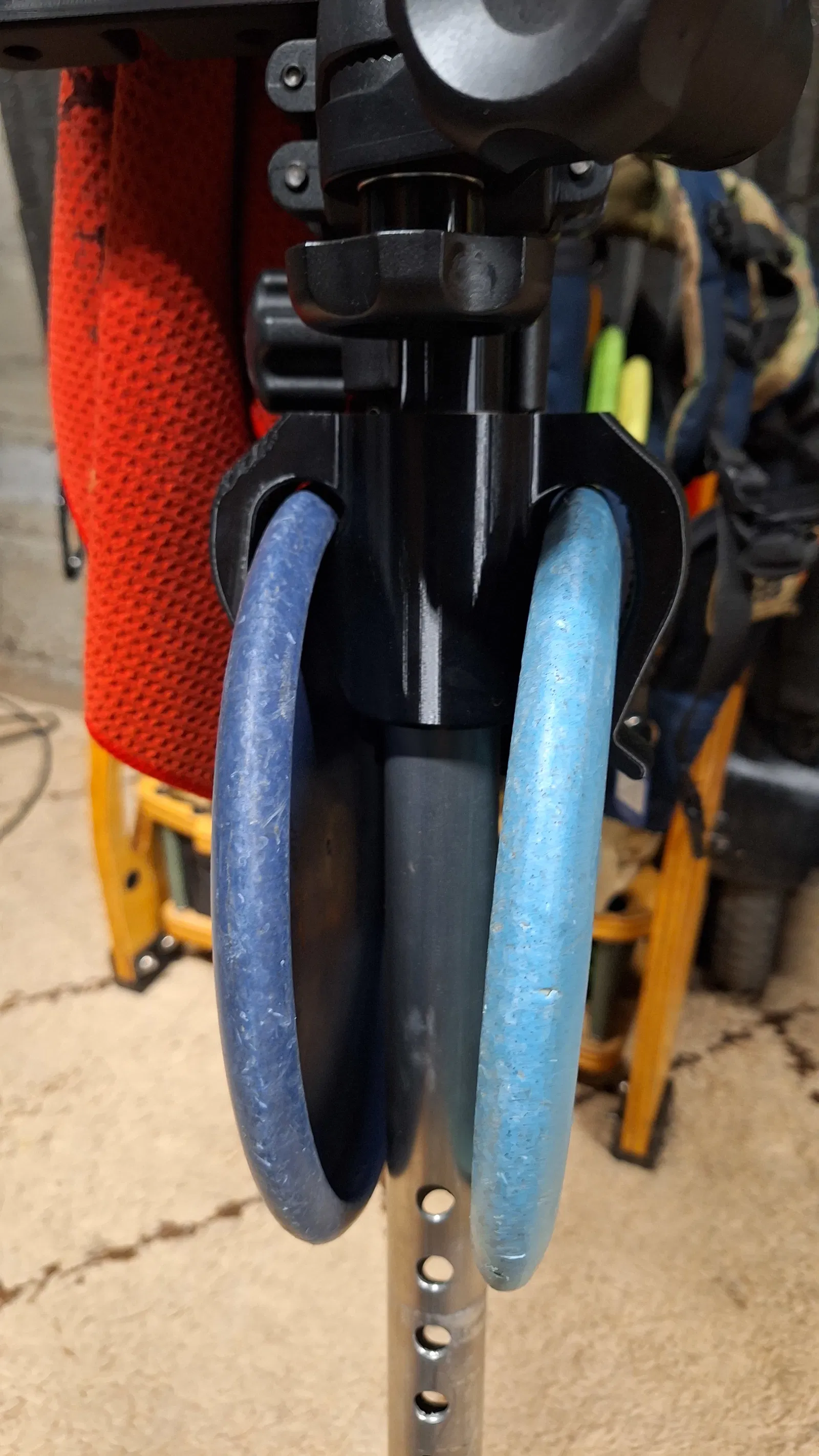 Giá đỡ/kẹp linh hoạt giúp mang thêm 2 putter trên xe đẩy disc golf. Khuyến nghị in TPU với 50% infill, không cần support. Vừa ống tay cầm 1.25" (ôm khít) và có file STEP để chỉnh đường kính.