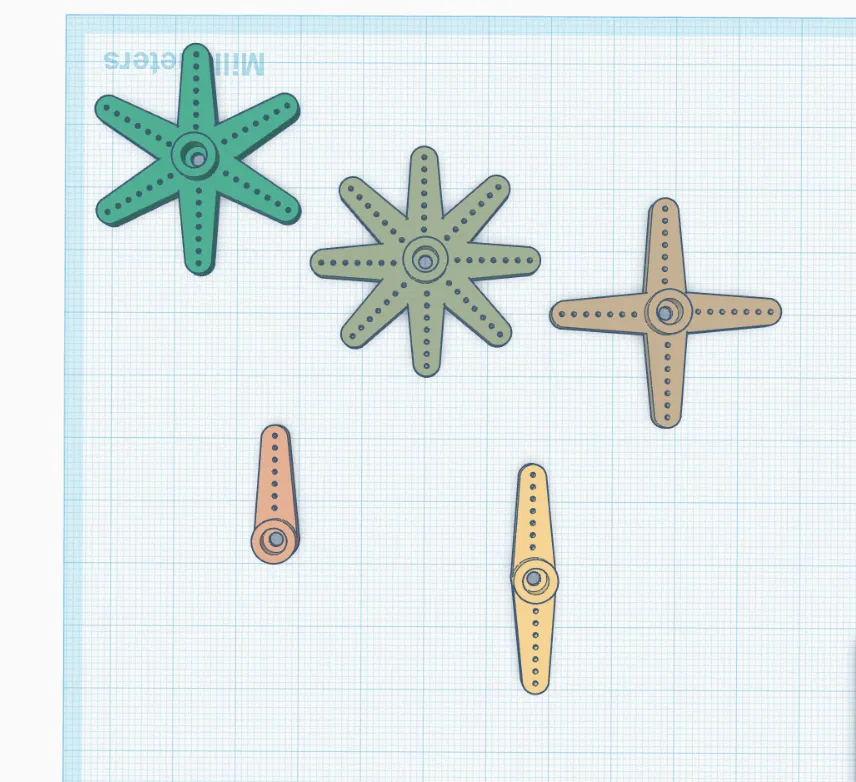 Các tay (servo arm) này tương thích với các micro servo sau đây: