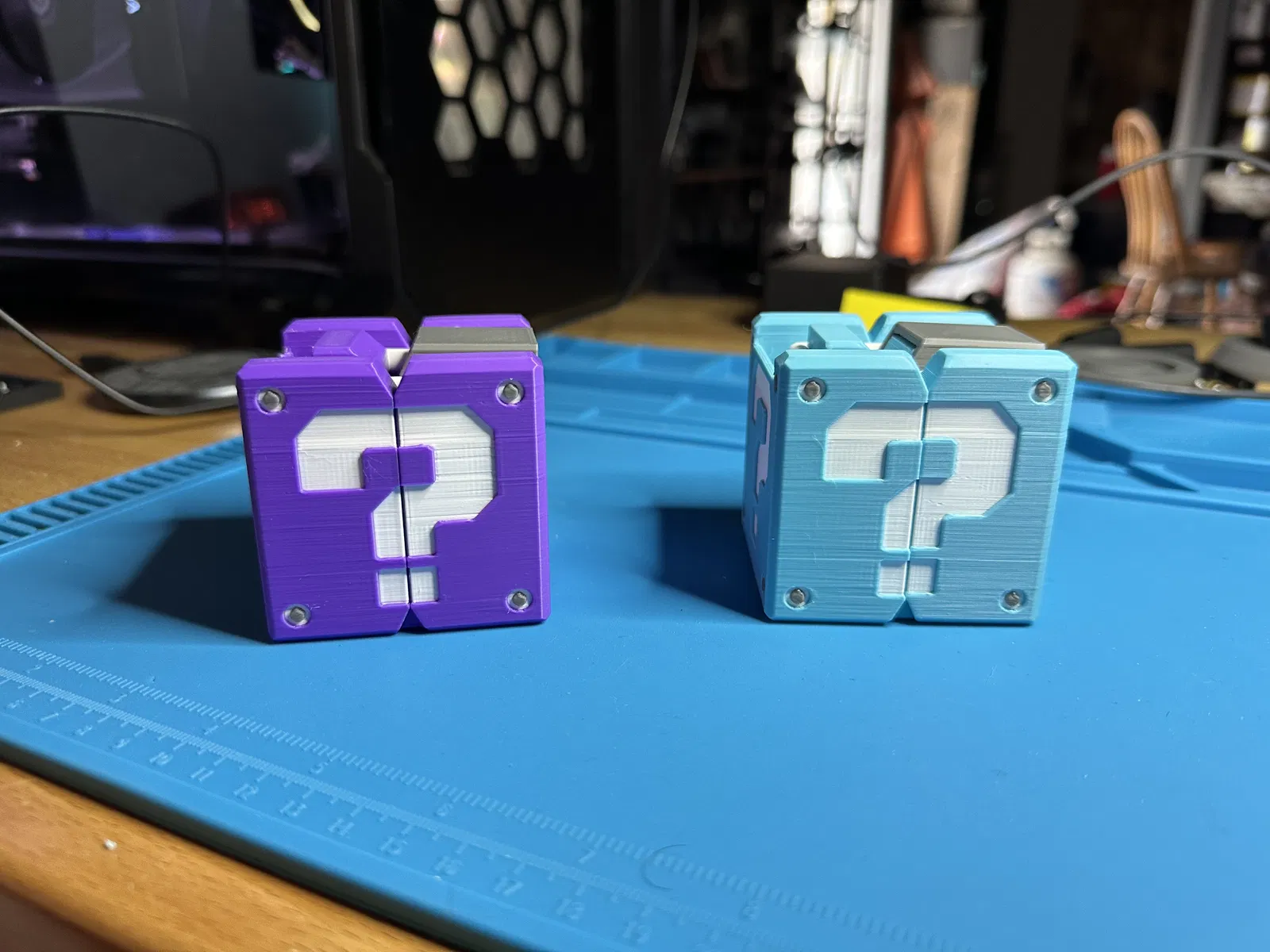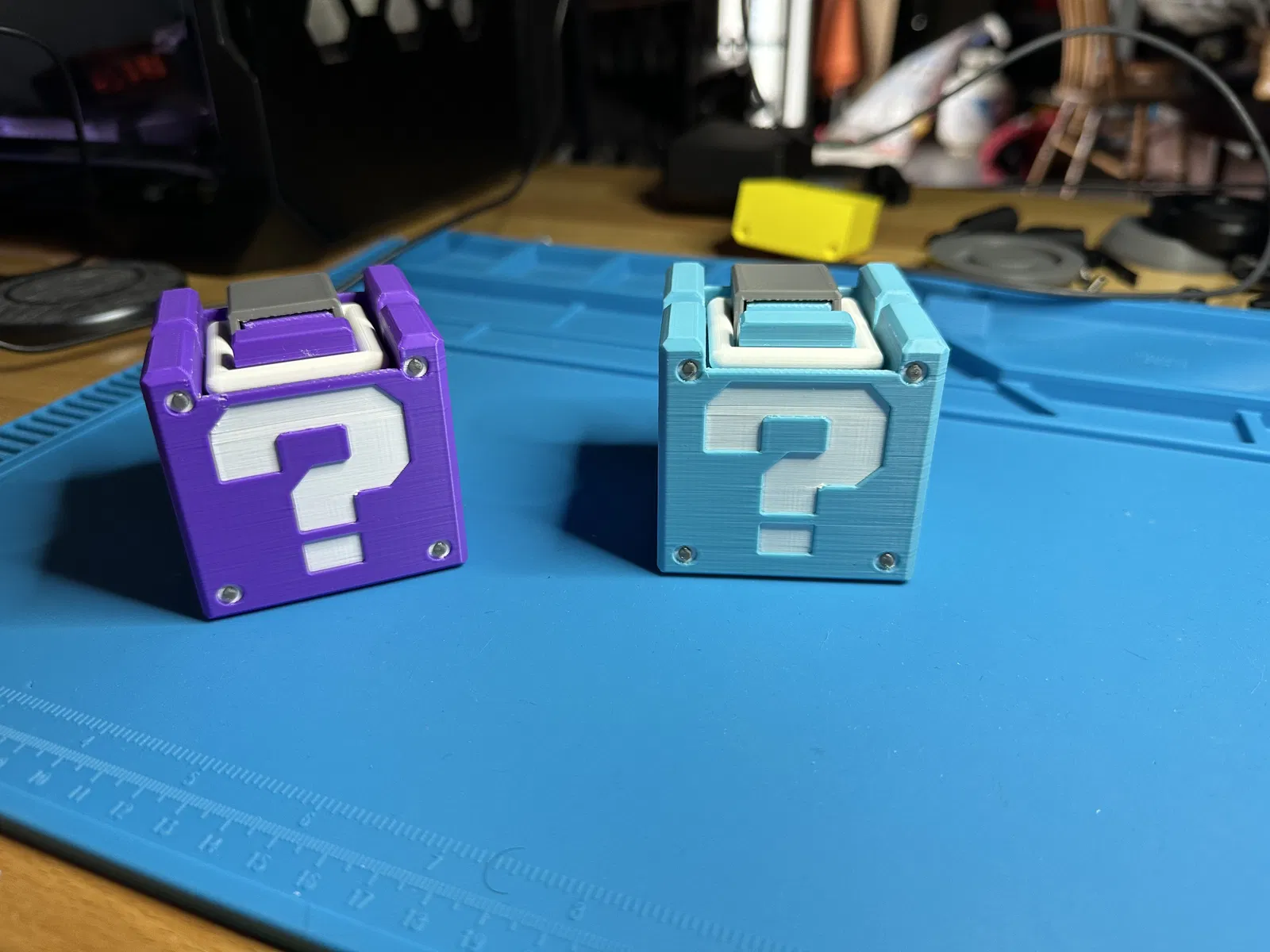 Hộp đựng băng game dạng khối dấu hỏi, dùng cho Nintendo DS/DS Lite/3DS/3DS XL và Switch/Switch 2. In được 8 băng DS/3DS hoặc 16 băng Switch/Switch 2, hỗ trợ in 3 màu (MMU Ready).