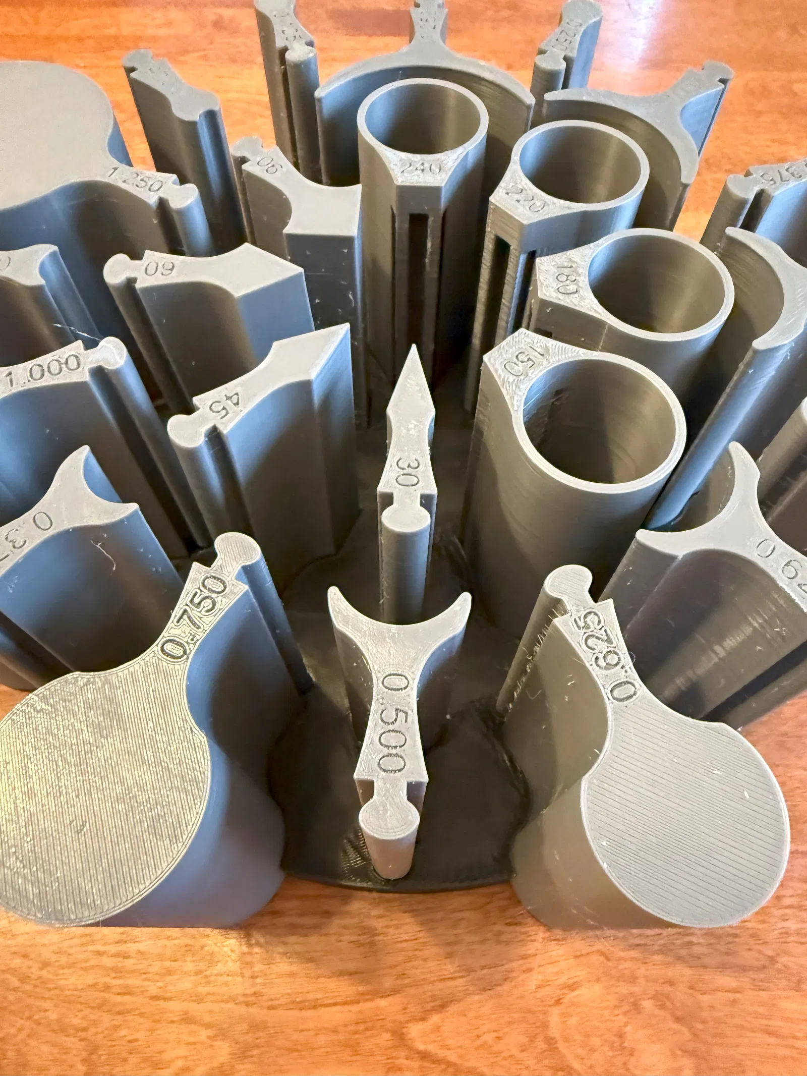 Bộ Interchangeable Sanding Contours gồm nhiều dạng lõm/lồi và góc chà nhám, kèm tay cầm có ngăn chứa giấy nhám và đế sắp xếp. Dễ đổi grit/contour, hợp cho woodworking, DIY, hoàn thiện bề mặt.