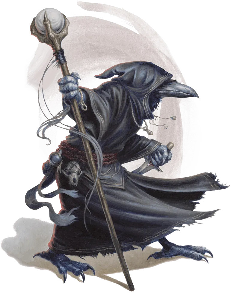 Bộ mini kenku—dân chim quạ lạnh lùng, quan sát cực bén và trí nhớ siêu nhiên. Thường xuất hiện ở Shadowfell và Material Plane, với các đặc tính như Kenku Recall, Mimicry và Expert Duplication cho nhân vật D&D.