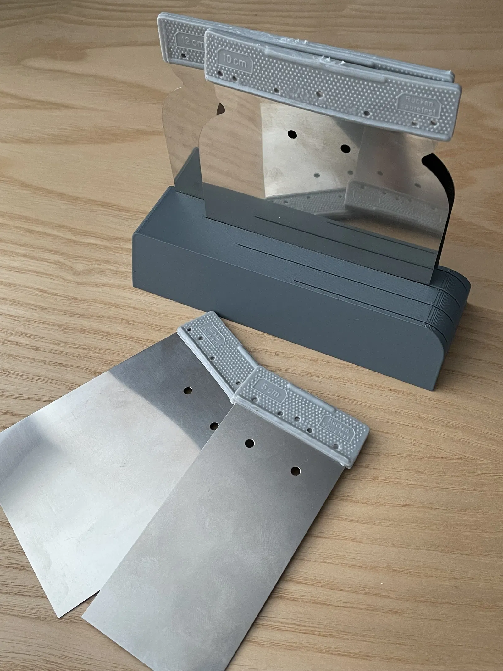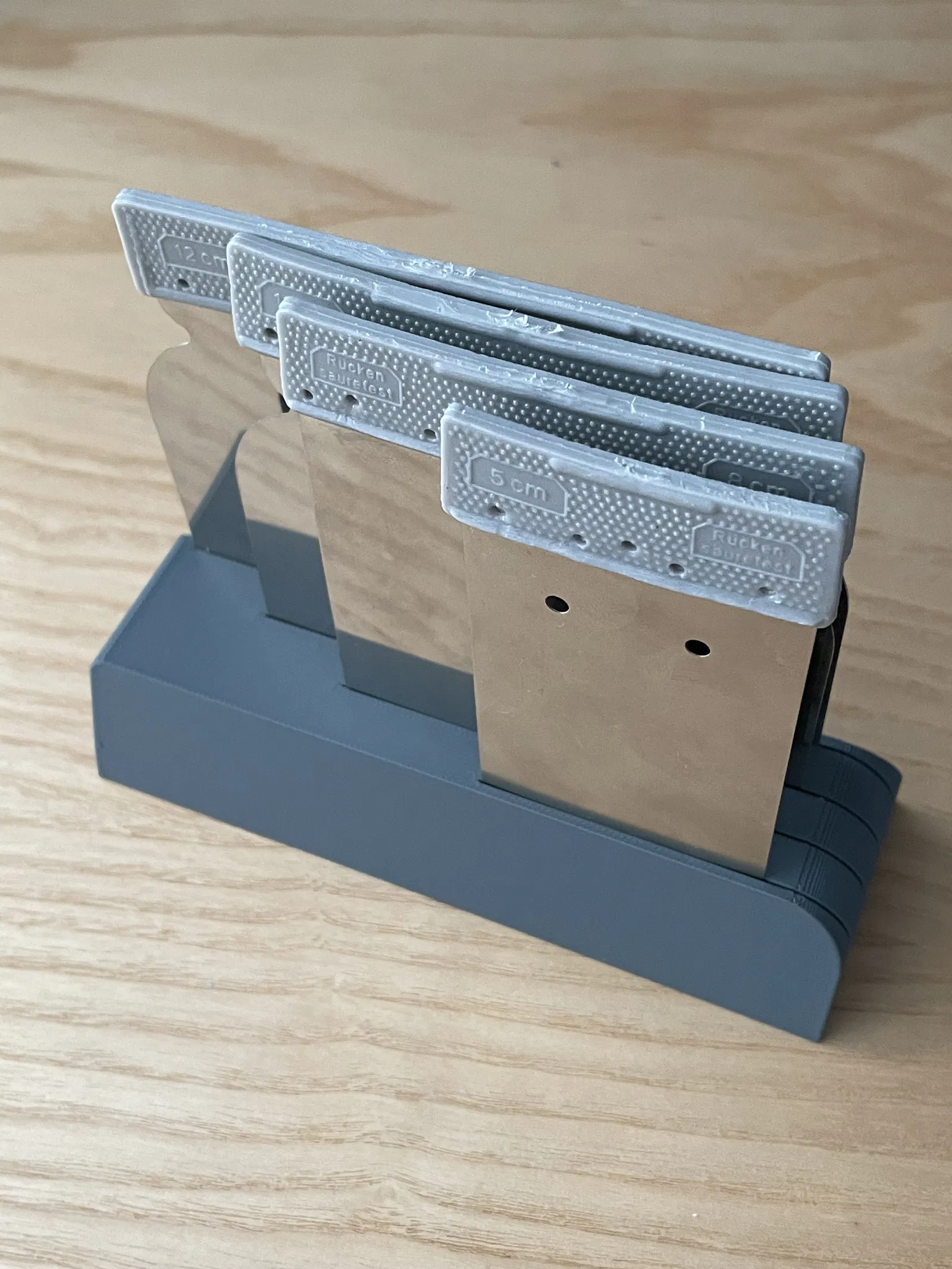 Tôi đã quyết định rằng khi tôi có giá đỡ để xây dựng, tôi sẽ làm một cái cho 4 gói vụn giá rẻ mà tôi đã mua cho máy in của mình. Gói của tôi là các bộ phế liệu 5, 8, 10, & 12cm và giá đỡ dừng chúng chỉ nằm xung quanh băng ghế của tôi.