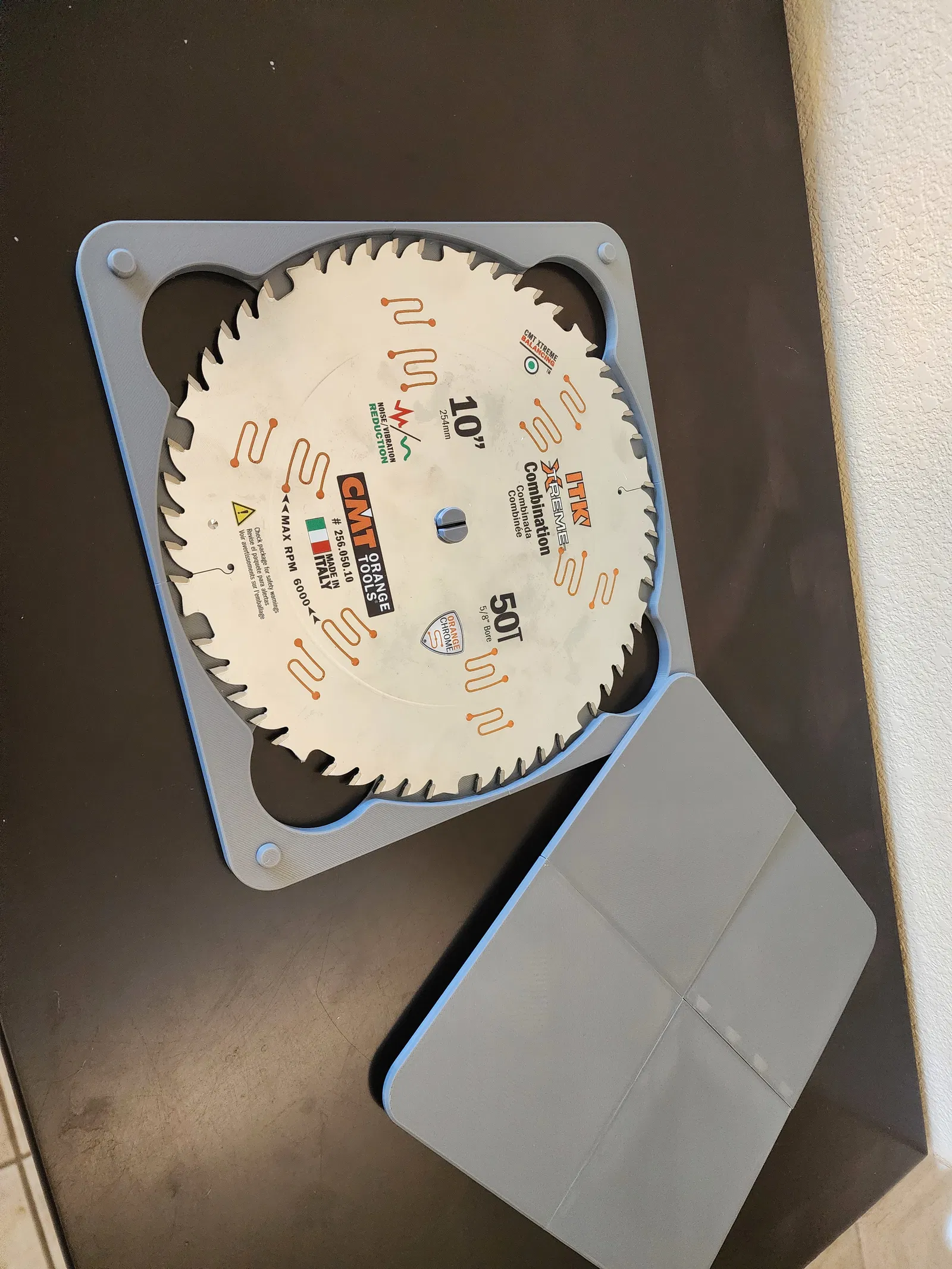 Phiên bản cho máy in nhỏ của khay/hộp lưu trữ lưỡi cưa bàn 10" (5/8" arbor). Thiết kế modular stackable tiết kiệm chỗ, có base và lid để sạch sẽ; ghép bằng hidden dovetails và nên dán keo để chắc.