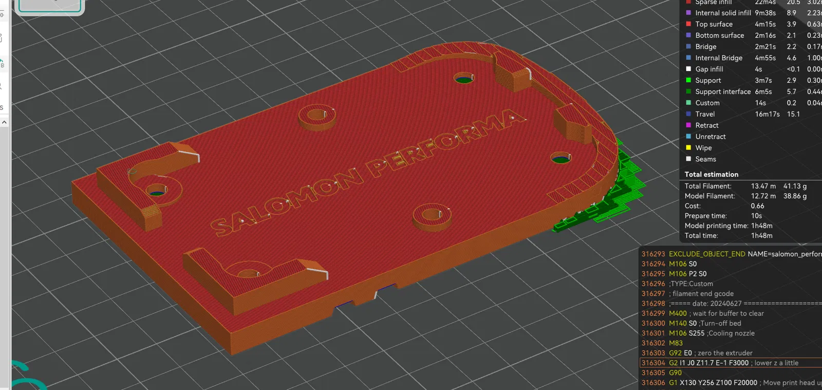 Mẫu Toe Plate (tấm đế mũi) dành cho giày ski Salomon Performa, tên gốc “podrazka lyziarky predna”. Phù hợp để thay thế/phục hồi phần đế trước (sole) của skiboot.