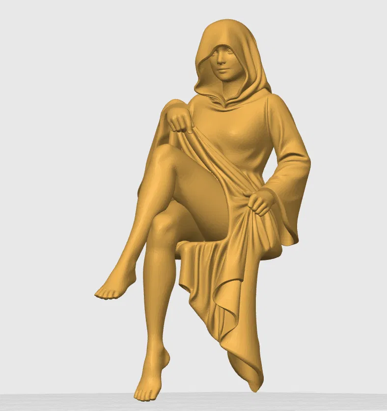 Mẫu 3D “Seated Veiled Woman” khắc họa hình tượng người phụ nữ trùm khăn đang ngồi, dáng vẻ nhẹ nhàng và tinh tế. Phù hợp để in trưng bày, làm decor hoặc mô hình nghệ thuật.