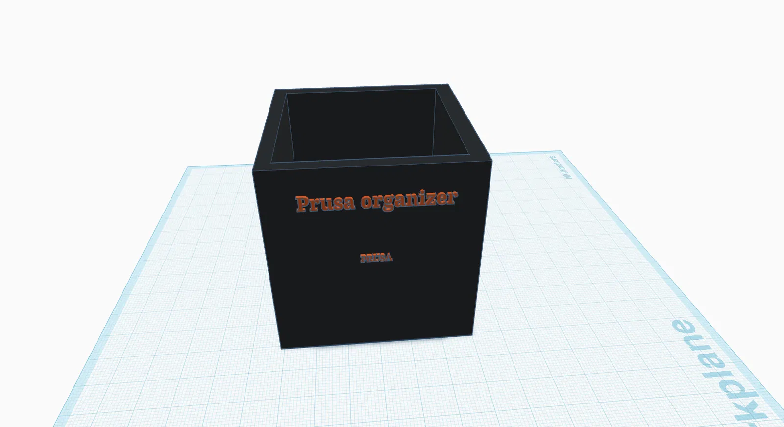 Mẫu Organizer giúp sắp xếp đồ dùng cho Prusa gọn gàng. Thiết kế từ Tinkercad, in thử bằng PLA trên Bambu Lab P1S. Không cần supports, nhưng có thể thêm trong Bambu Studio nếu cần.