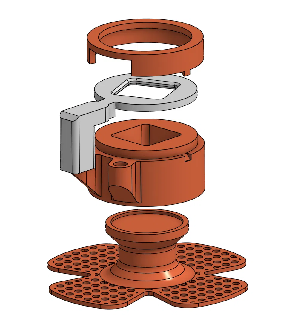 Cơ chế khoá của phần đế cần 3 nam châm 5mm x 3mm.