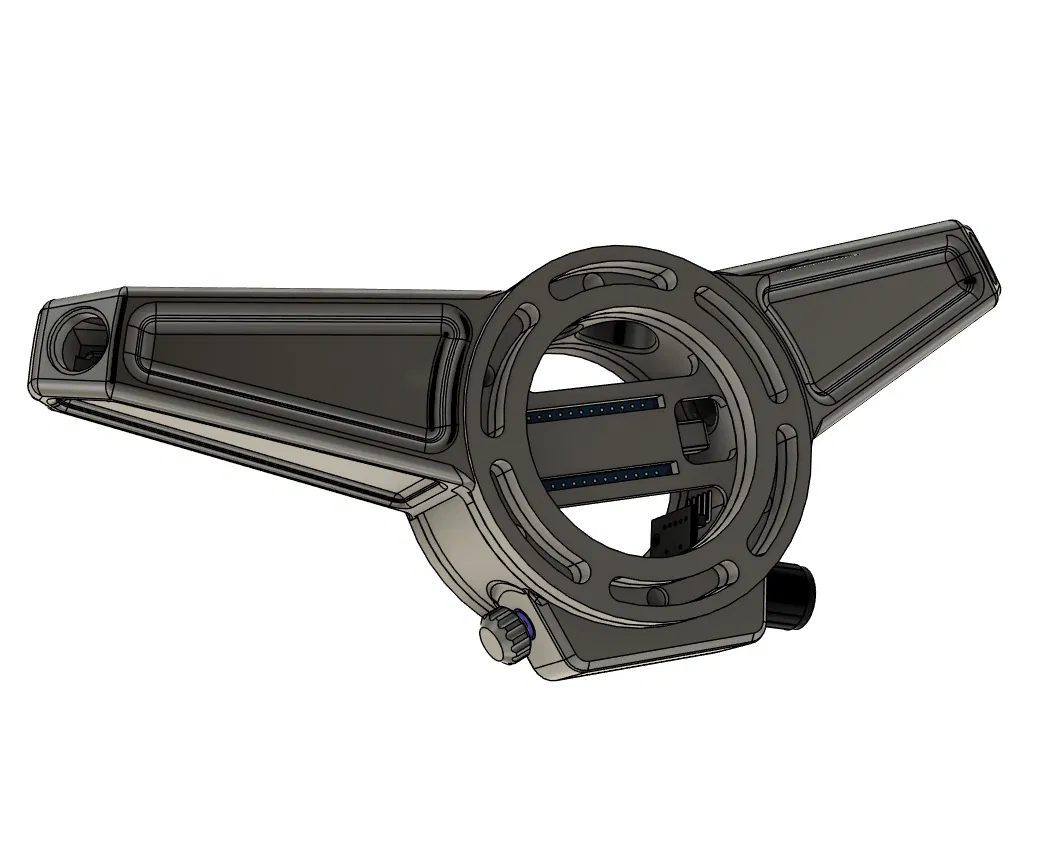 Wheel hub 70mm QR thiết kế gọn, ẩn sau vô lăng thể thao tròn. Có 4 nút + nút còi, 7-way funky switch và rotary encoder (kèm push). Depth 40mm, in PLA là đủ, cấu hình bằng Arduino + Simhub.