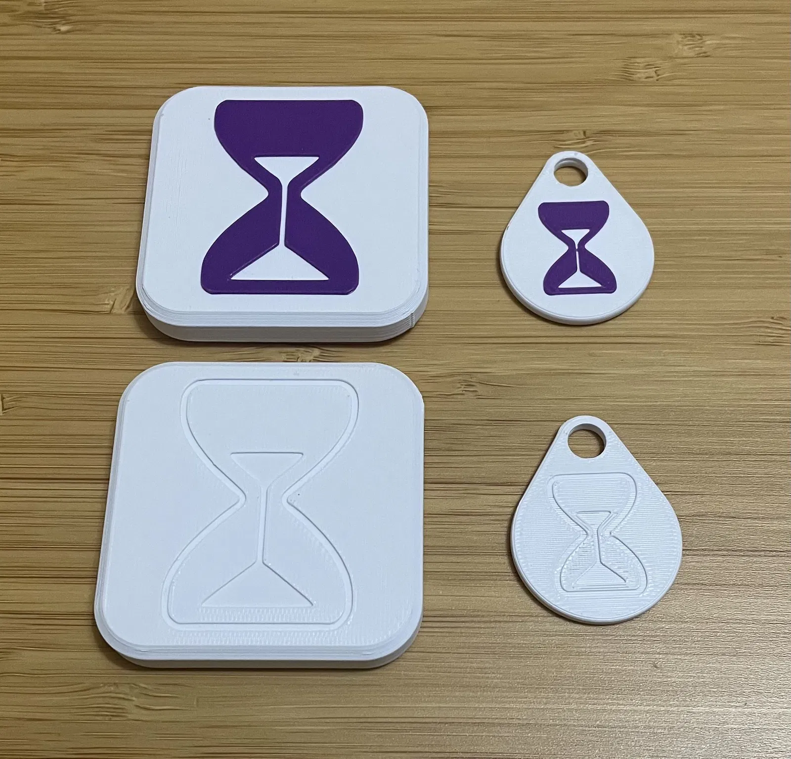 Gắn thẻ NFC 25mm vào các mẫu này để dùng với app năng suất iOS mã nguồn mở Foqos. Trong slicer, bạn canh chèn các điểm pause ở đúng layer để nhét nam châm (cho brick) và thẻ NFC (cho cả brick và keychain), kèm thêm một lần đổi màu (color change) cho phần logo ở các phiên bản nổi (embossed).