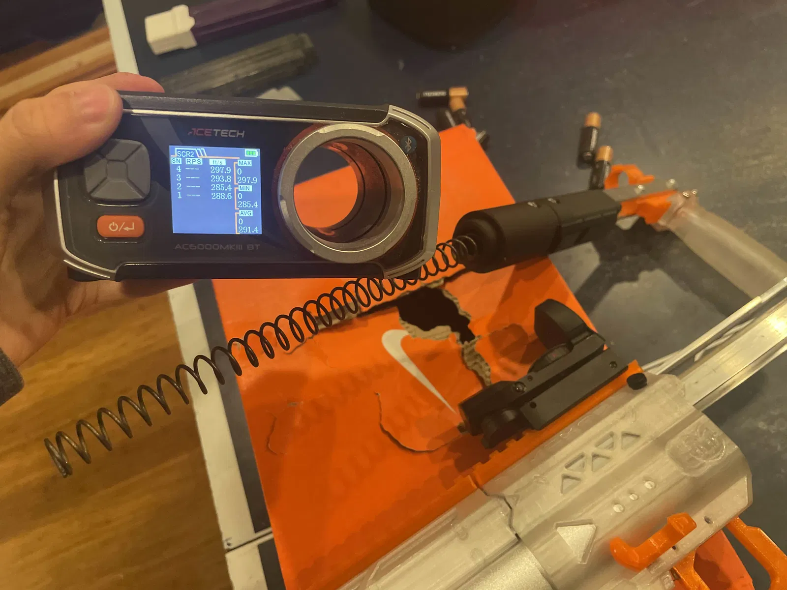 Trung bình đạt 300 FPS với nòng 55cm và lò xo OOD 1.5 Swift/MK4/NPX. Hơn 200 chút xíu với nòng Kury 45cm và lò xo Worker 1.4x250, và xém đạt 300 với Worker 1.6x270. Với lò xo OOD 1.7x250, đạn nitroshot và nòng 55cm, tui đã bắn qua mốc 350.