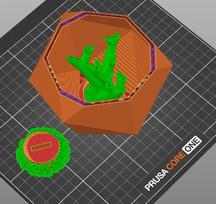 Mình có cung cấp file STL để in, kèm file STEP và f3d cho ai muốn chỉnh sửa nguồn cho dễ. Thiết kế ban đầu bằng Fusion 360, in bằng PETG và ABS đều ổn như nhau. Cũng có thêm file 3mf cho Prusa Core 1. Lưu ý về supports: mình dùng organic supports, tháo ra khỏi phần ruột của vỏ khá dễ. Bạn sẽ cần kềm mũi nhọn (needlenose pliers) để bẻ các nhánh support và kéo từng mảnh ra, nhưng nhìn chung support bong khỏi mặt trong rất gọn.