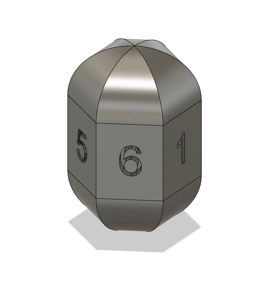 Mẫu xúc xắc D6 đơn giản được thiết kế theo hình dáng hạt đậu, phù hợp dùng làm dice cho DnD hoặc in 3D để sưu tầm. Kiểu dáng lạ mắt nhưng vẫn giữ đúng chức năng của D6.