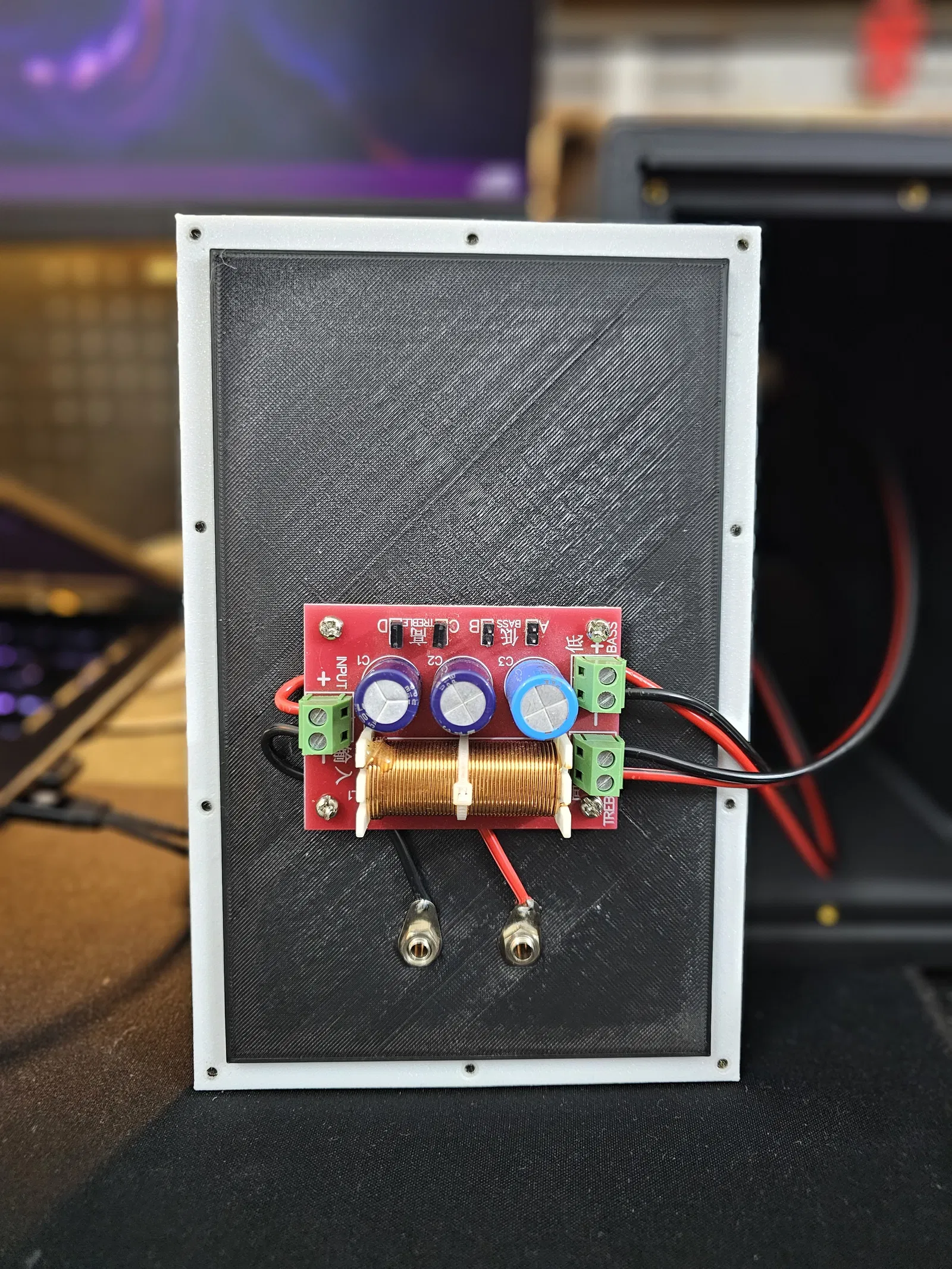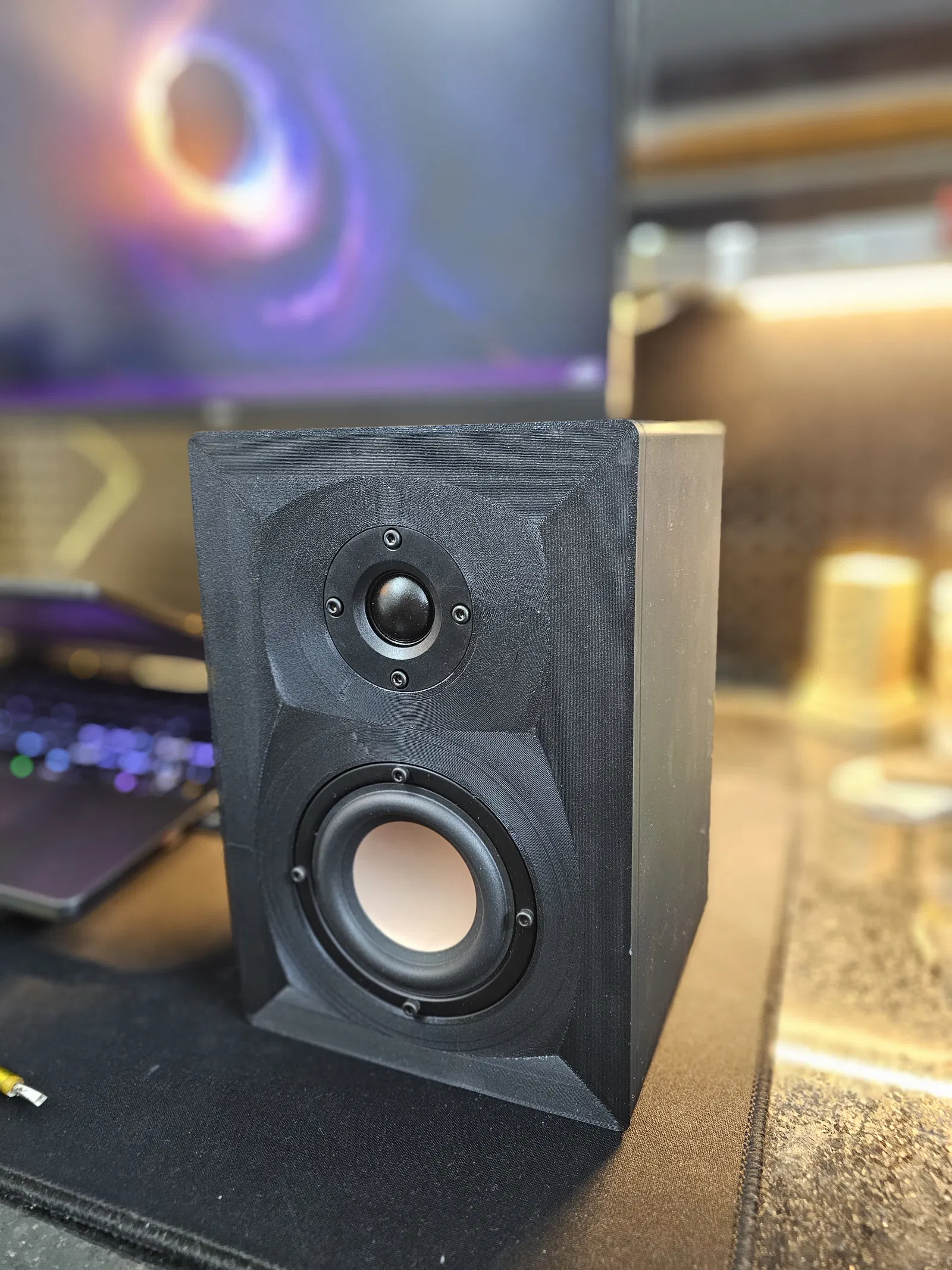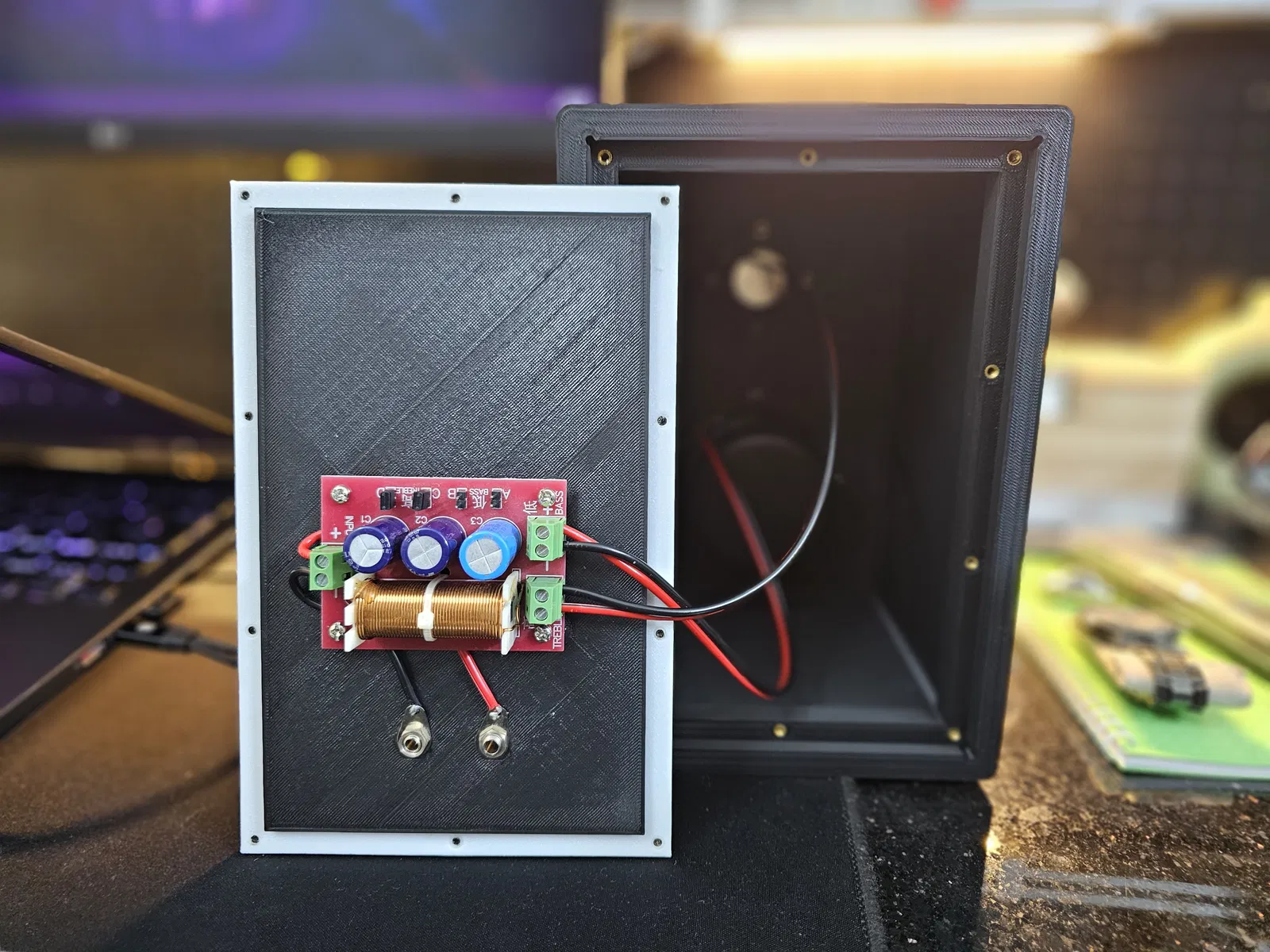 Mẫu loa bookshelf DIY dạng thùng kín (closed back, không port/không vent), dùng driver Hivi M3N và tweeter dome lụa 52mm 15W, kèm mạch crossover. Có sẵn các file STL cho thân, tấm lưng và gasket TPU.