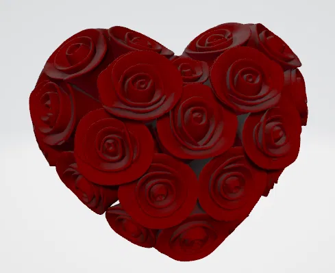 Mẫu trang trí chủ đề Valentine với bố cục hoa hồng tạo hình trái tim. Phù hợp để làm vật trang trí nhỏ đặt trên bàn làm việc hoặc gắn treo tường, giúp không gian thêm lãng mạn cho dịp 14/2.