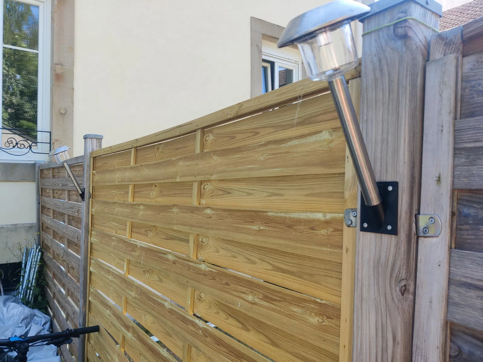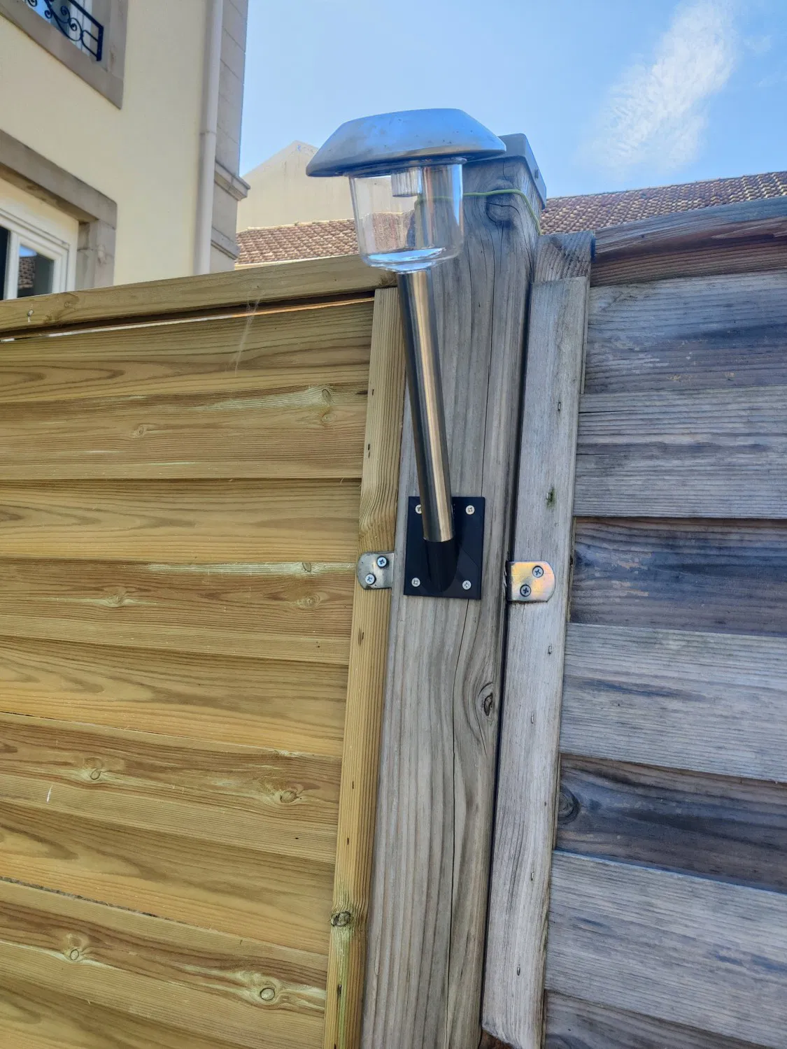 Hỗ trợ tường cho đèn năng lượng mặt trời trong vườn.