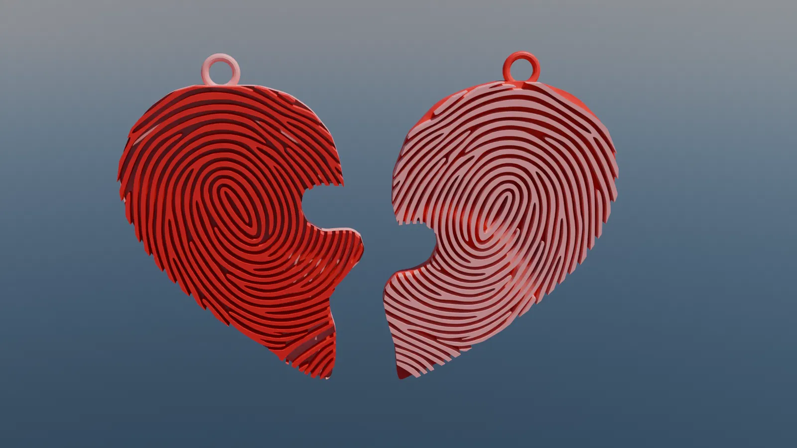Hai mảnh móc khóa hình nửa vân tay, ghép lại thành một trái tim hoàn chỉnh như mảnh ghép. Có thể dùng riêng từng nửa hoặc lắp khít/đặt nam châm neodymium để hút dính.