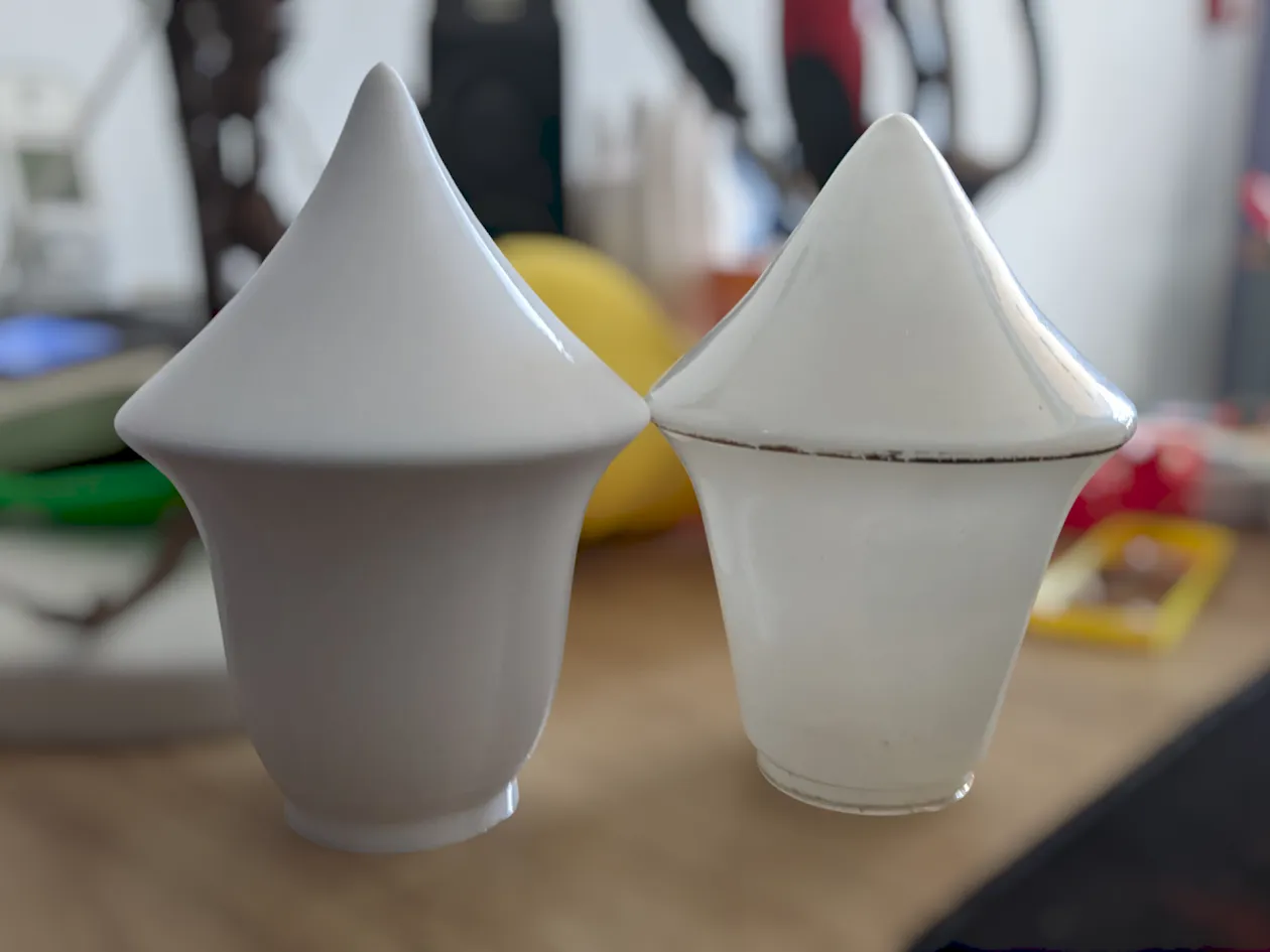 Mẫu chụp/ốp che bóng đèn thay thế cho đèn gương phòng tắm, dáng nón cổ điển. In dễ, không cần supports, bề mặt mịn giúp tán sáng tốt. Khuyến nghị PLA trắng, PETG hoặc ASA để bền và chịu nhiệt.