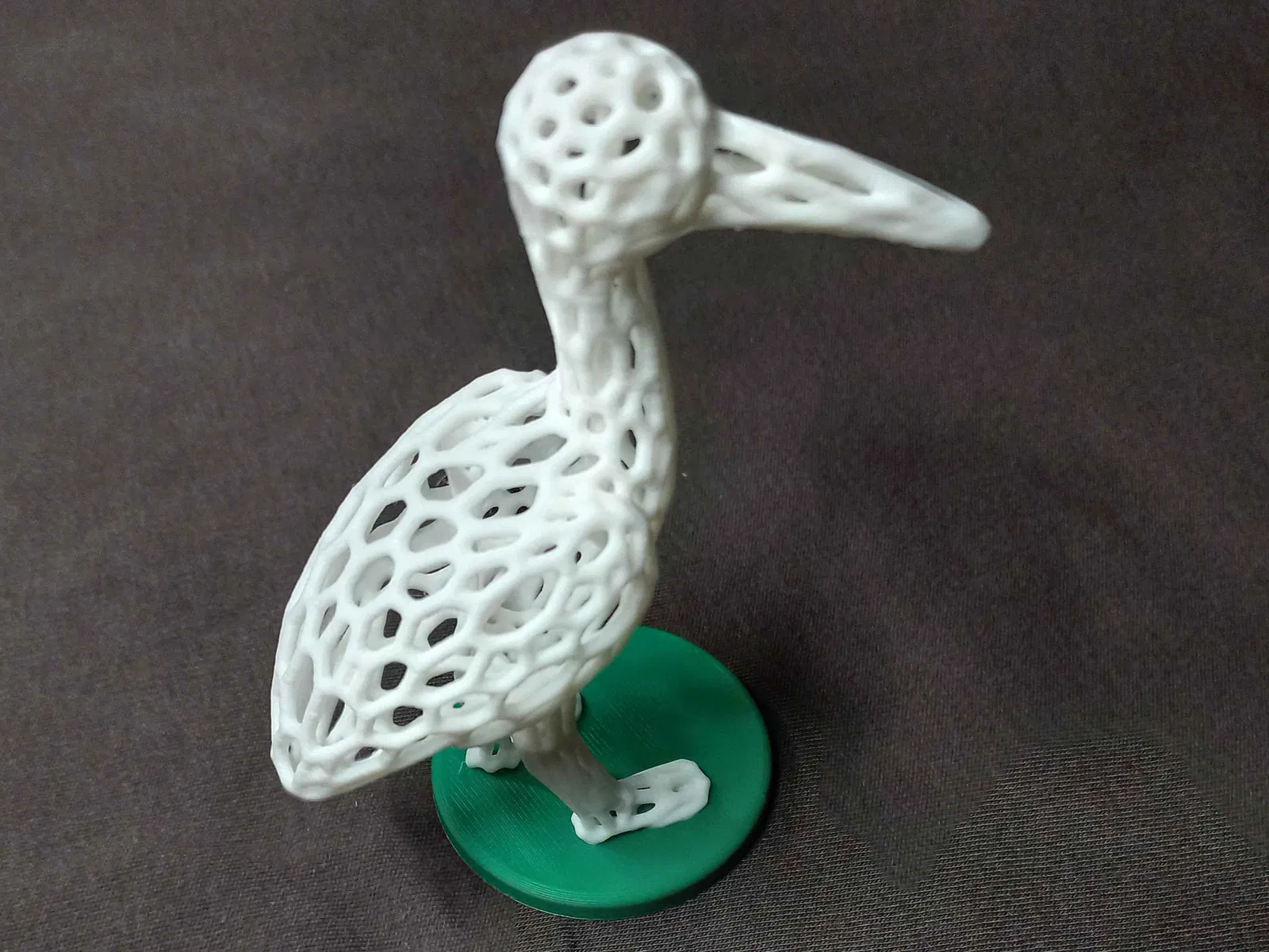 Mẫu Stork Voronoi: một chú cò theo phong cách voronoi độc đáo. Có kèm gợi ý in với tree support cho các phần overhang, và mẹo in 2 màu bằng cách đổi filament sau phần đế (có thể split để dùng MMU).