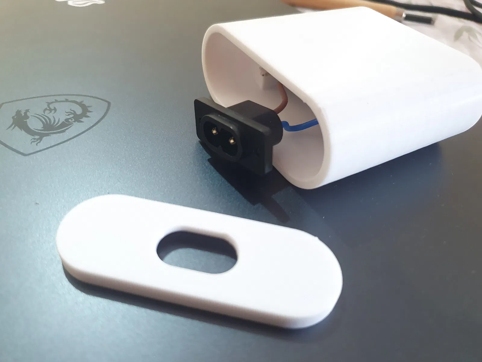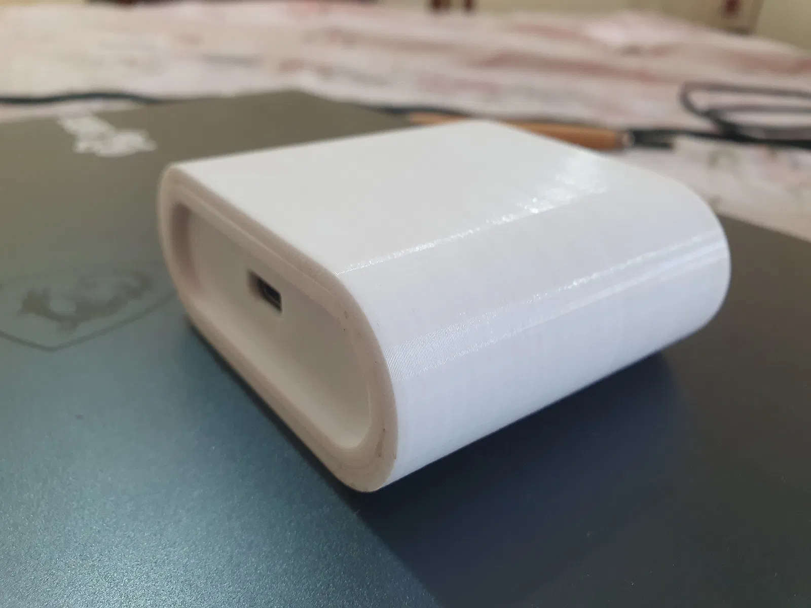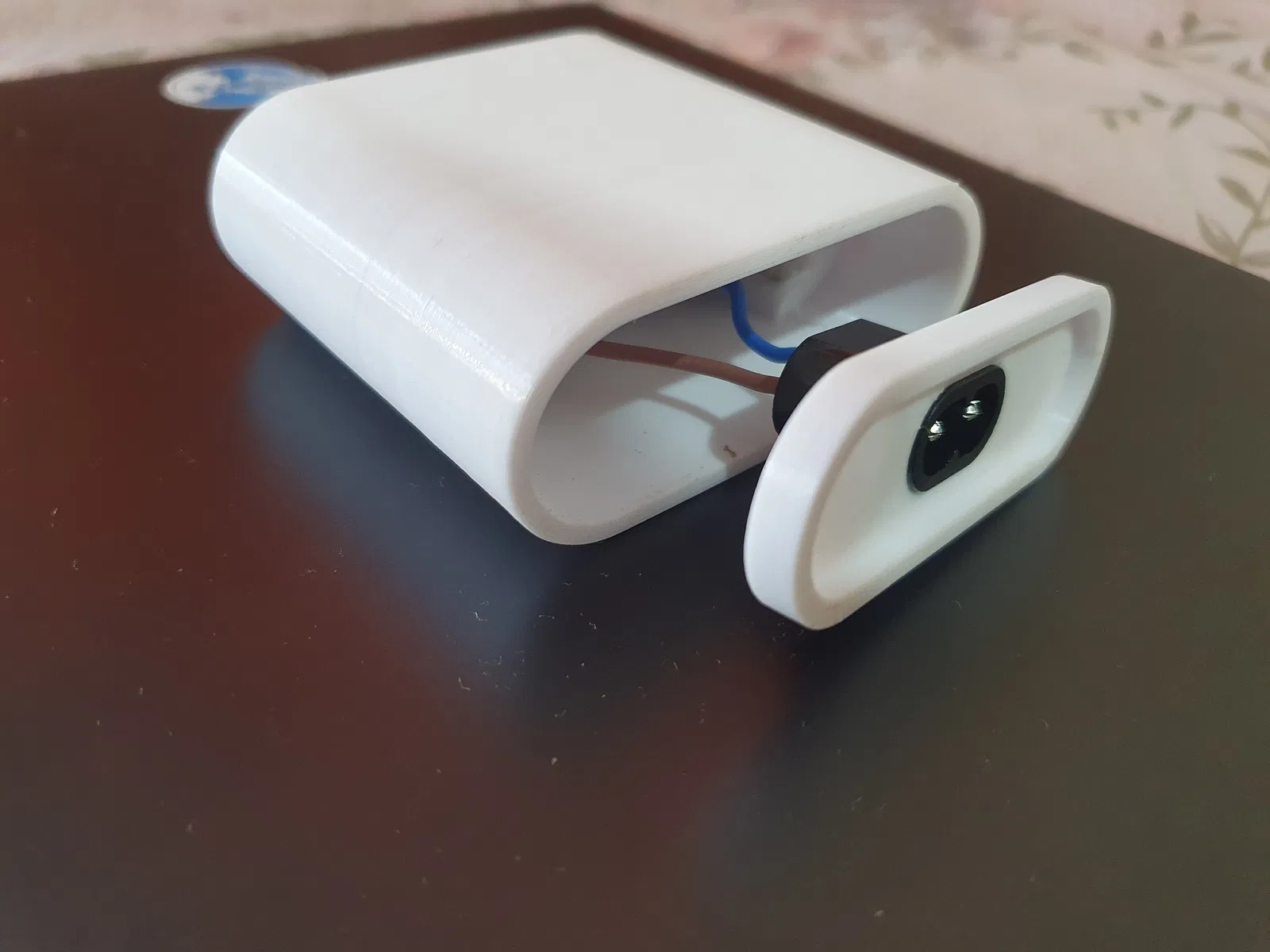Enclosure/casing tuỳ chỉnh để bọc mạch sạc điện thoại (từ sạc Samsung 25W bị hư). Sau khi thay capacitor bị nổ cho mạch hoạt động lại, mẫu vỏ này giúp che chắn an toàn hơn, giảm nguy cơ điện giật. Thiết kế bằng Fusion 360.