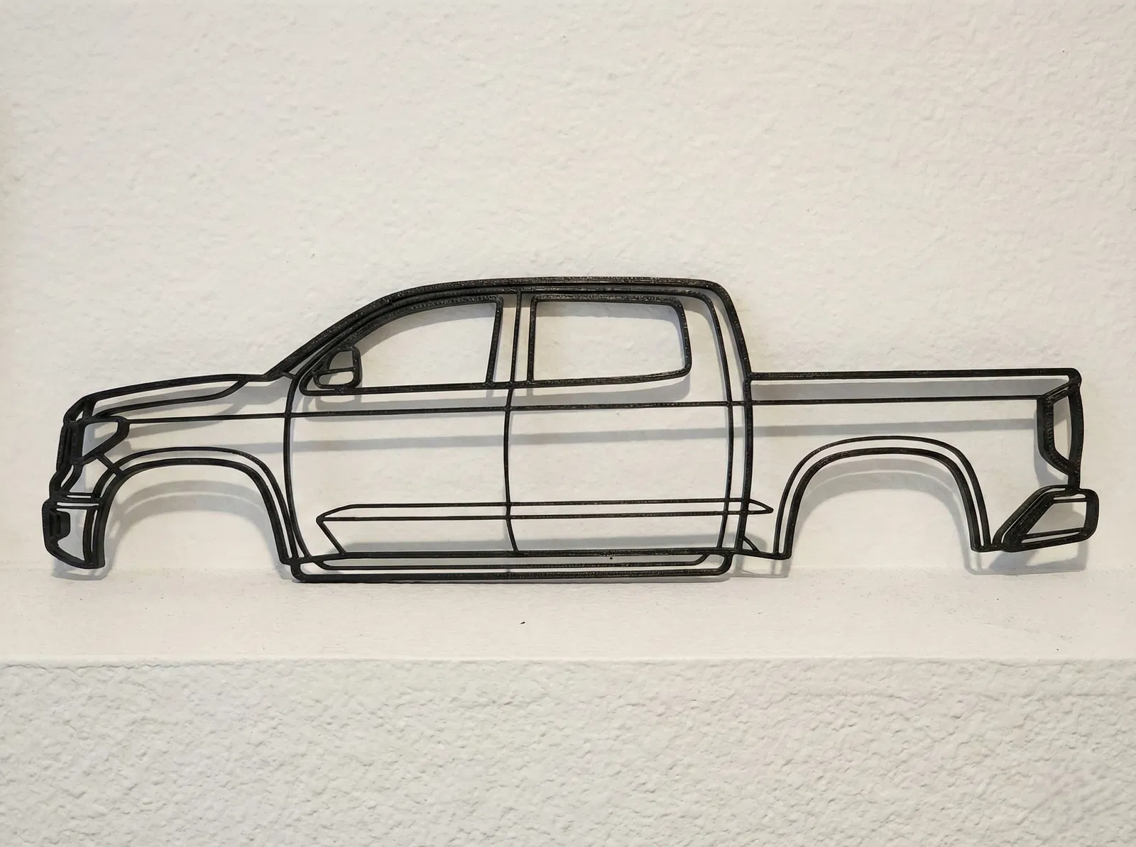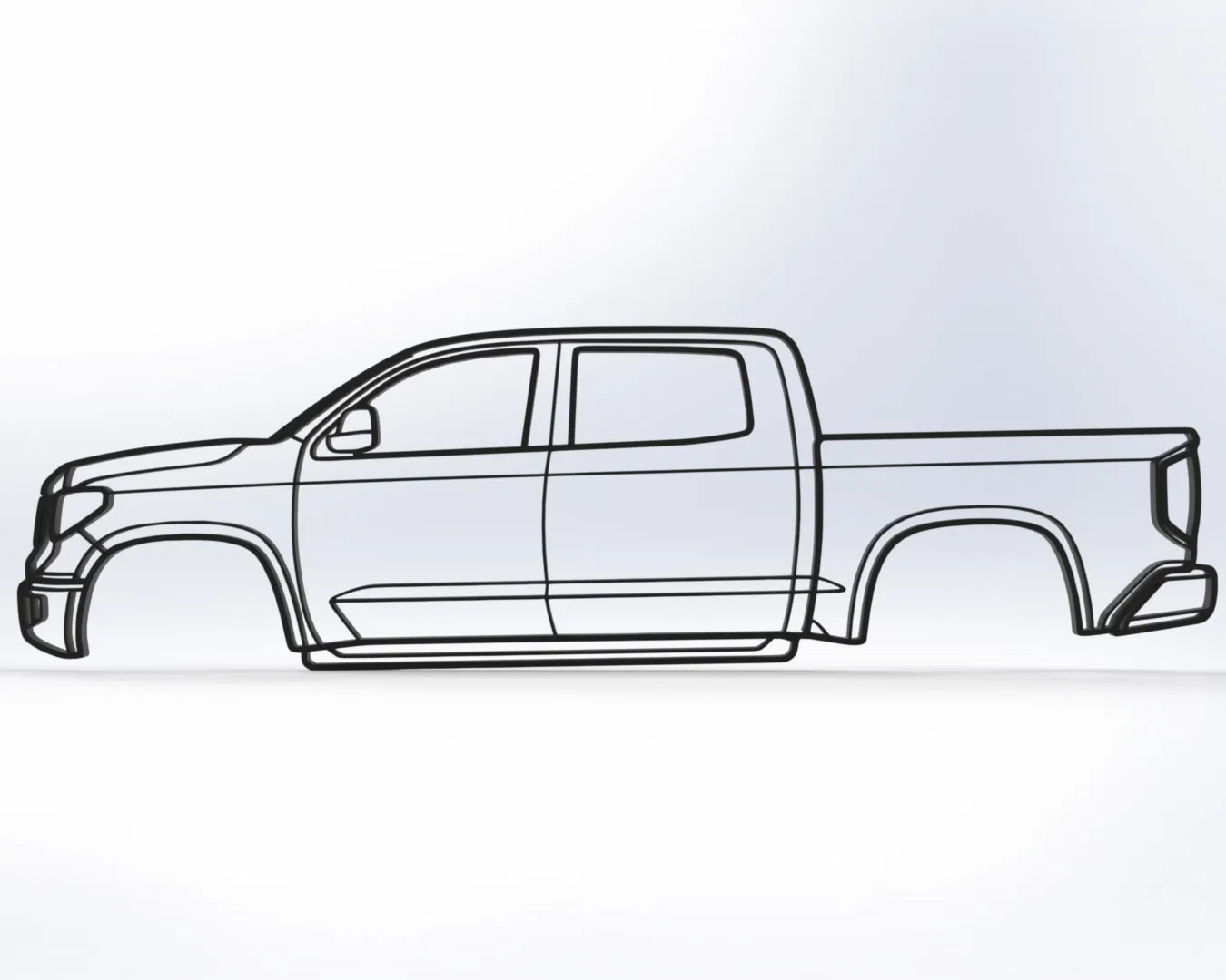 Mẫu tranh treo tường lấy cảm hứng từ Toyota Tundra CrewMax thế hệ 2.5, phù hợp để in 3D trang trí góc làm việc hoặc gara. Thiết kế đơn giản, dễ trưng bày sau khi hoàn thiện.