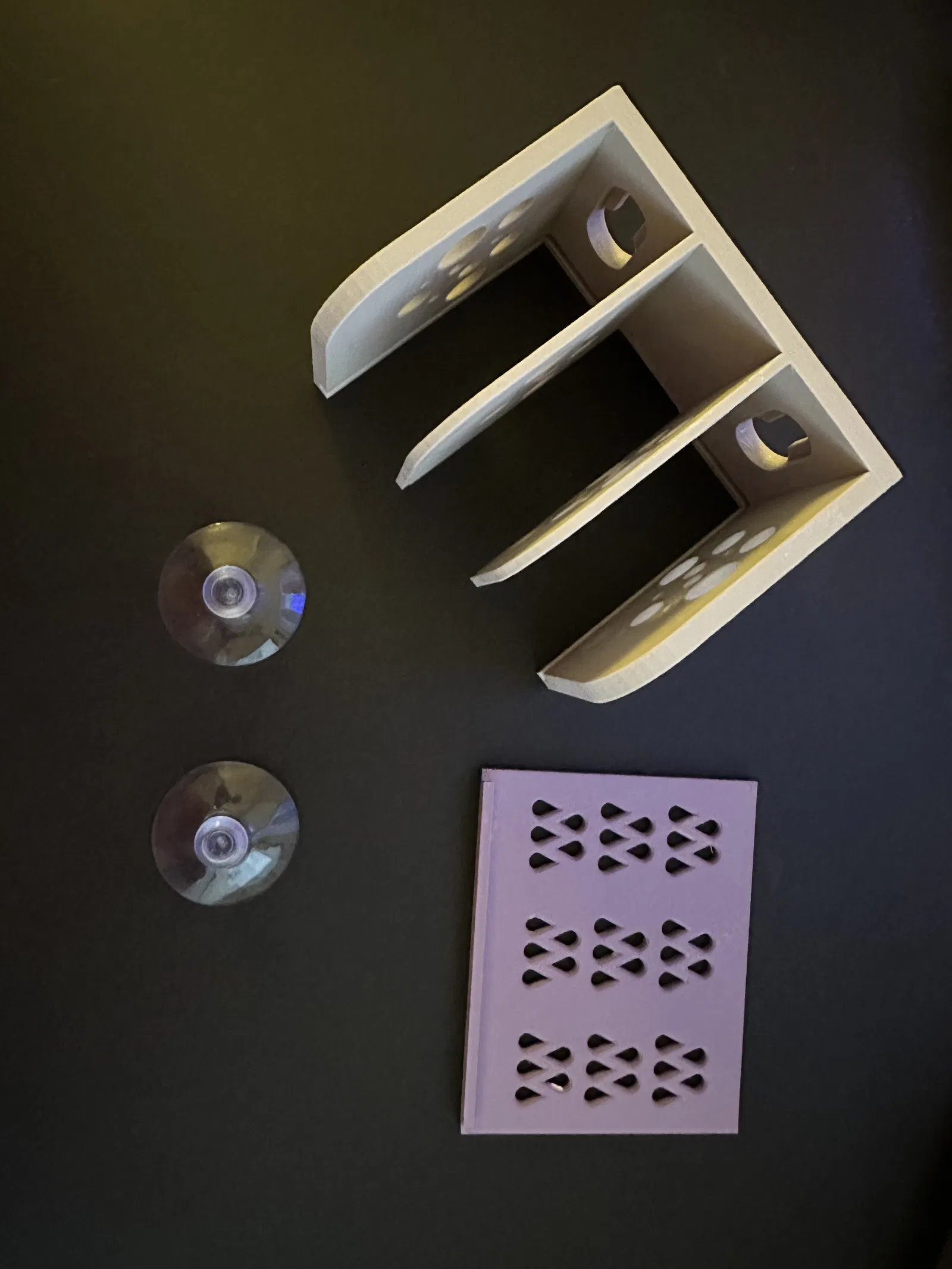Mẫu này dùng để để 3 bánh xà phòng và có thể cố định trong khu vực vòi sen hoặc bồn tắm bằng hai giác hút.