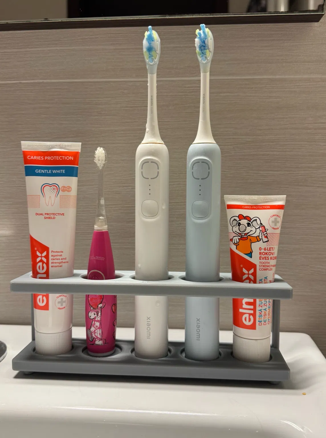 Mẫu này phù hợp cho gia đình và dùng rất ổn với các loại bàn chải điện phổ biến (ví dụ tay cầm kiểu Xiaomi / Oral-B).