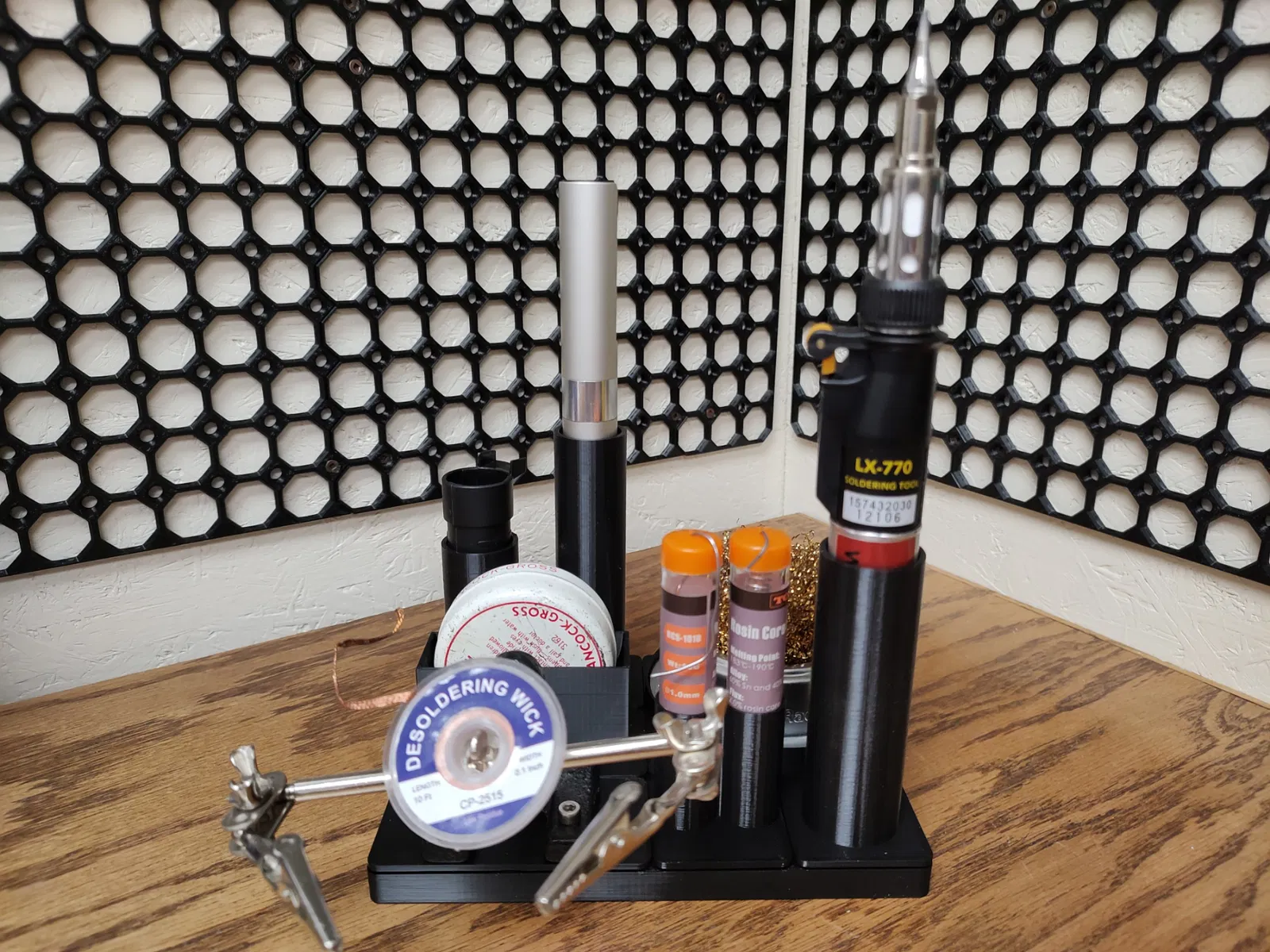 Mình thích ý tưởng trạm hàn gốc của K2-Kevin nhưng chưa hợp nhu cầu, nên remix lại: dùng ốc vít thay nam châm để dễ di chuyển, thiết kế lại module theo đồ mình dùng và thêm module cho “helping hands”.