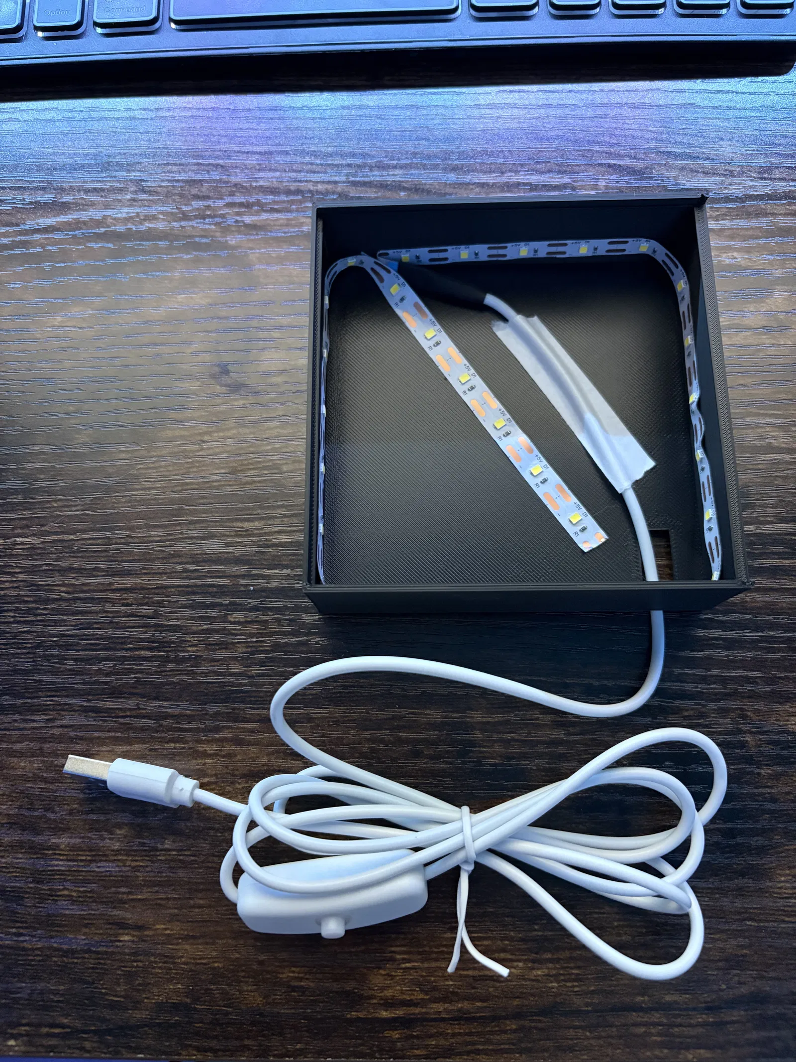 Hộp lithophane làm nhanh, chi phí thấp (18,90gr), in khoảng nửa tiếng, thiết kế cho lithophane trượt 100x100mm. Có hướng dẫn tạo lithophane trên itslitho.com và gợi ý dải LED USB có công tắc.