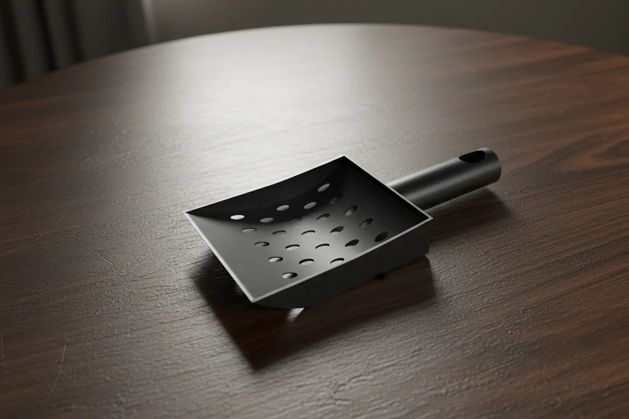 Đây là v2 của mẫu xẻng xúc phân mèo bản gốc của mình. Tụi mình đã dùng cái xẻng này khá lâu rồi và mình có nhận góp ý từ “tester” sản phẩm xịn nhất: bà xã mình. Một điểm bả nhắc đi nhắc lại là khi xúc cát (hay nói đúng hơn là phân) thì nó hay không nằm yên trong xẻng, mà thường rớt ngược ra ngoài do thiết kế đáy phẳng.